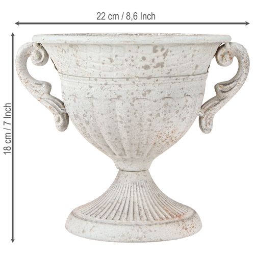 Antyczna filiżanka z uchwytami jako metalowa ozdoba w stylu vintage to prawdziwy skarb dla wszystkich miłośników antycznej elegancji, shabby chic i dekoracji vintage. Dzięki swojemu wyszukanemu, zabytkowemu wyglądowi i autentycznym akcentom rdzy, to dekoracyjne trofeum doda wyjątkowego uroku każdemu pomieszczeniu. Kielich zaprojektowany na wzór antycznego modelu zachwyca tłoczonymi wzorami i kunsztownie zdobionymi uchwytami, które dopełniają klasyczny wygląd. Szaro-biały kolor doskonale komponuje się z wieloma stylami wystroju wnętrz, zwłaszcza popularnymi stylami shabby i rustykalnymi, a także oferuje wszechstronne możliwości łączenia z innymi dodatkami domowymi. Niezależnie od tego, czy będzie ozdobą stołu biesiadnego na weselach i przyjęciach, czy też rustykalnym akcentem dekoracji stołu w wiejskich domach – to trofeum jest niezastąpionym elementem kreatywnych pomysłów na dekorację o antycznym uroku.