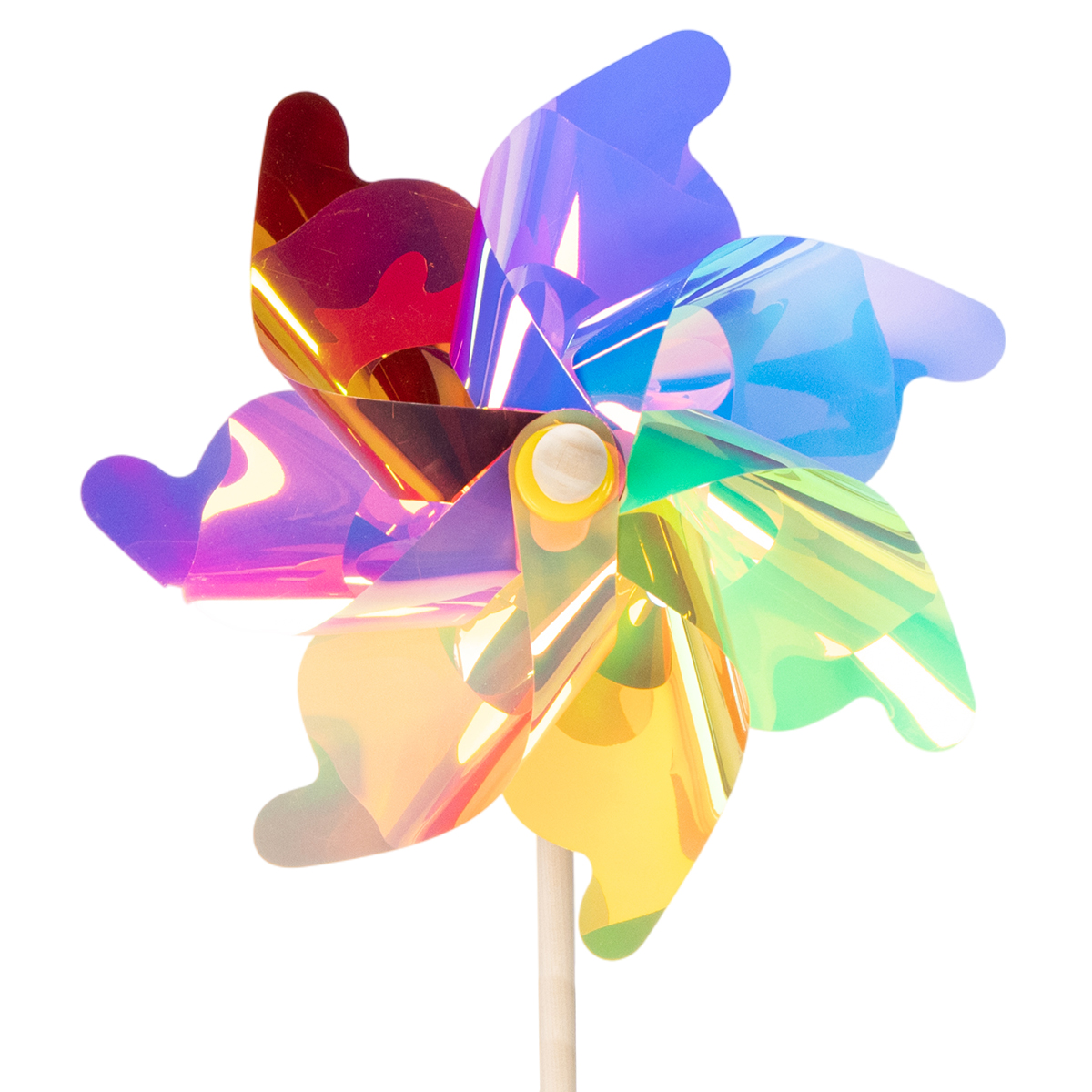 Ten kolorowy wiatraczek nie tylko przyciąga wzrok, ale także stanowi wspaniały dodatek do Twojej przestrzeni na zewnątrz. Ma 75 cm wysokości i 30 cm średnicy, dzięki czemu jest doskonale widoczny i łatwy w ustawieniu. Plastikowe łopatki mienią się mieniącymi się kolorami, a drewniany pręt zapewnia naturalny i solidny kontrast. Połączenie tych materiałów sprawia, że wiatraczek jest odporny na wiatr i warunki atmosferyczne, a jednocześnie pozostaje wystarczająco lekki, aby kręcić się z gracją nawet przy delikatnym wietrze.