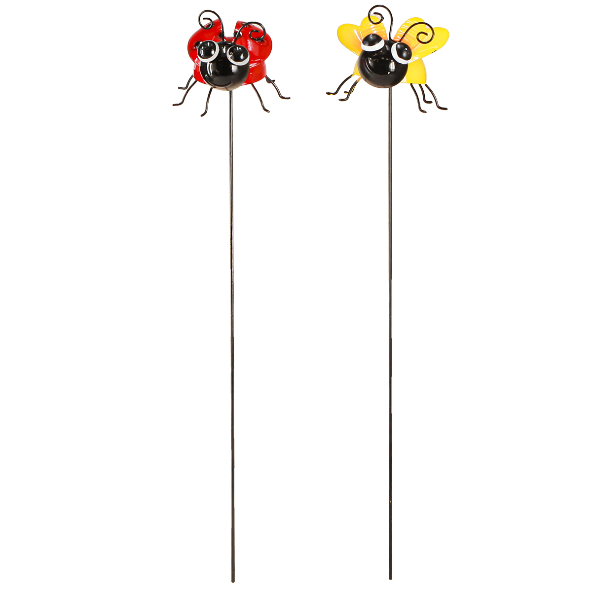 Biedronka i Pszczółka z Patykiem Dekoracja Ogrodowa Metalowa 46cm 2szt
