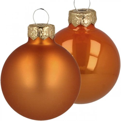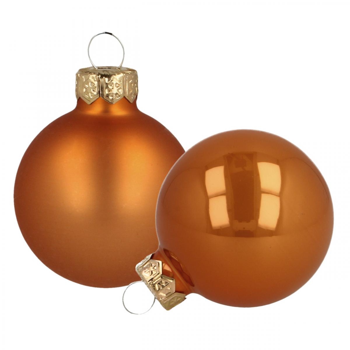 Pomarańczowa z domieszką miedzi: szklane bombki świąteczne nadają ozdobom świątecznym ekskluzywności i blasku. Kulki szklane są sortowane jako błyszczące i matowe dla większej różnorodności. Bombkę można łatwo przymocować do choinki na wieszaku ze złotą koroną.Bombki choinkowe ze szkła pomarańczowego na mniejszej choince przyciągają wzrok, szczególnie jako dekoracja stołu lub jako ozdoba świąteczna przy wejściu lub w małym pokoju. Dzięki mocnemu, efektownemu kolorowi tych bombek można nimi ozdobić np. ośnieżoną choinkę czy biały wieniec adwentowy.