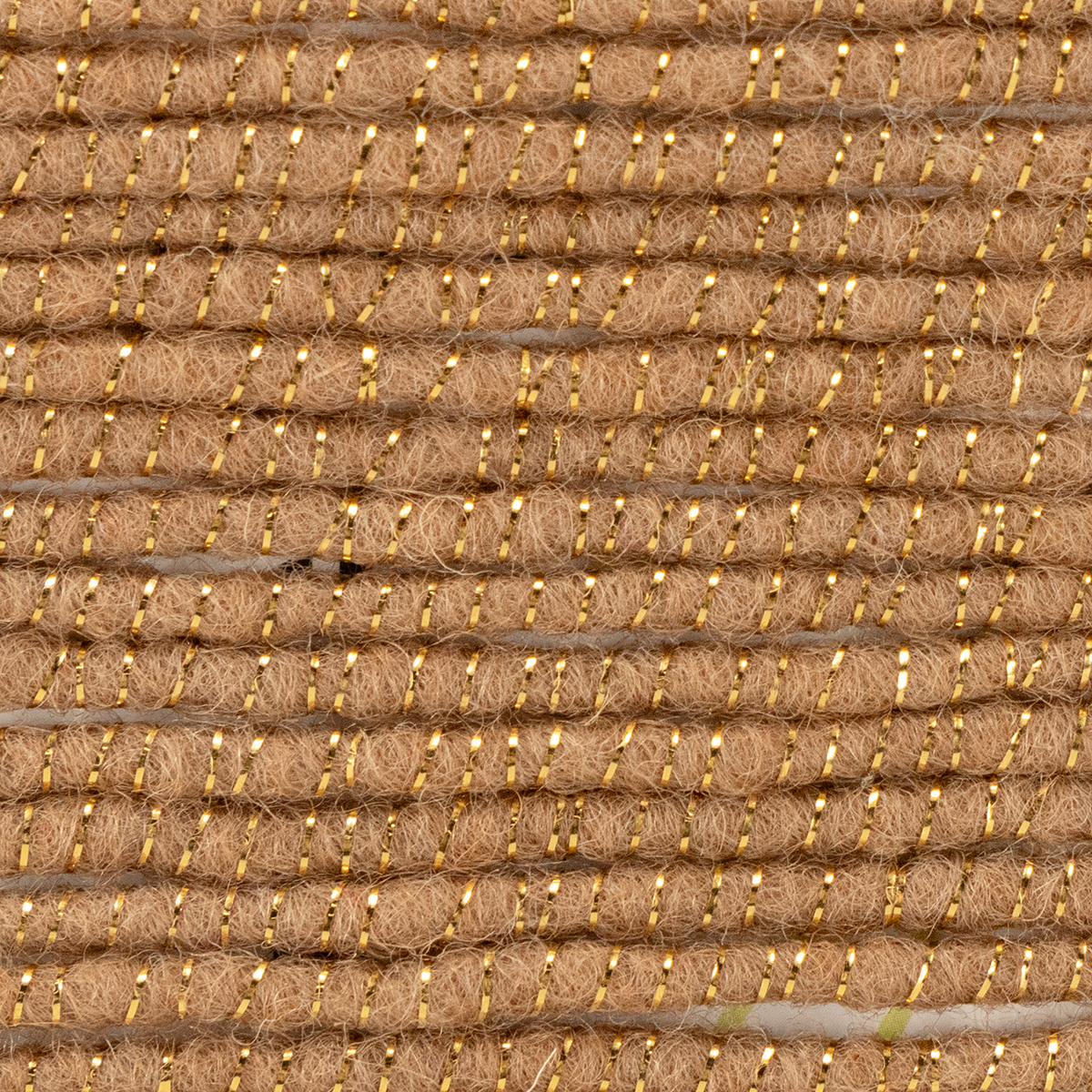 Ten brązowo-złoty wełniany sznurek to prawdziwy wszechstronny gadżet do dekoracji, rękodzieła i projektów kreatywnych. Wykonany w 100% z wełny i przeplatany delikatnymi, połyskującymi złotymi akcentami lureksowymi, prezentuje się wyjątkowo elegancko. Idealny, aby dodać ciepłego, a zarazem eleganckiego akcentu do każdego projektu. Zintegrowany drut wewnątrz utrzymuje sznurek w odpowiednim kształcie i sprawia, że można go niezwykle łatwo wyginać w najróżniejsze formy – od delikatnych opasek po odważniejsze kokardy i pętelki.