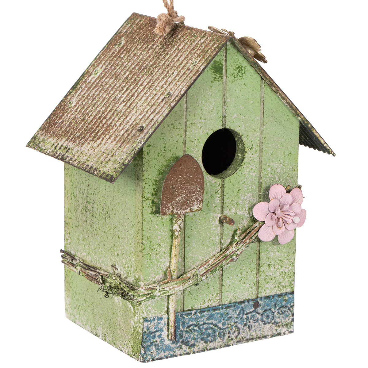 Nazwa produktu: Budka dla ptaków z dekoracją kwiatową, romantyczna dekoracja wiejskiego domu, 19 cm
