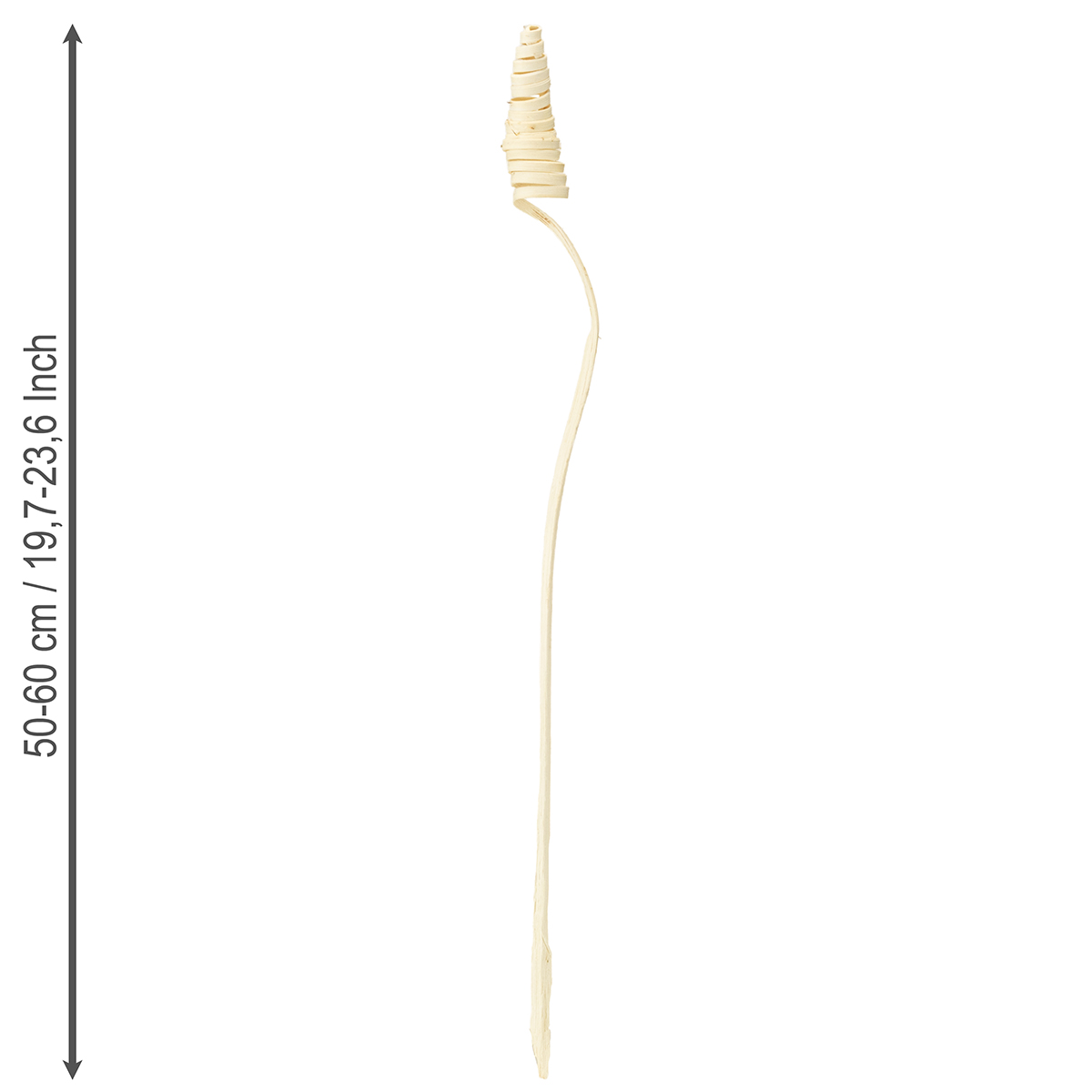 Drewniane spirale Cane Cone są bielone dla wyrafinowanego wyglądu i są w zestawie 25 sztuk. Ponieważ są to produkty naturalne, długości łodyg mogą się różnić. Tak więc drewniane kije mają długość od 50 do 60 centymetrów.