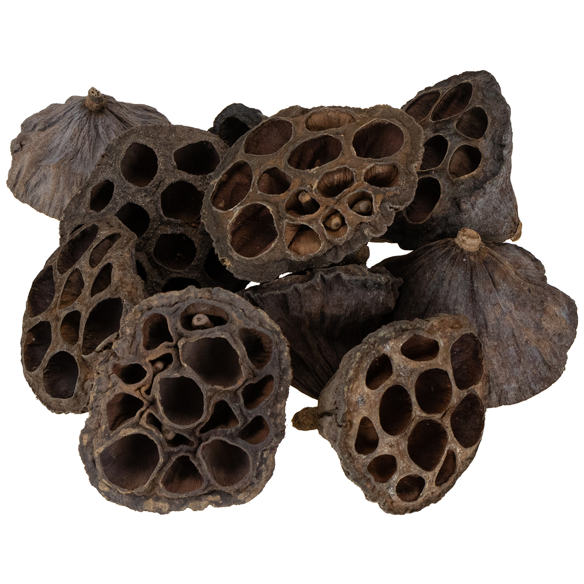 Stożkowaty kształt słupków lotosu zostały wysuszone, ale nadal częściowo zawierają nasiona i są w sumie 100 sztuk w plastikowej torbie. Ponieważ są to produkty naturalne, rozmiary mogą się różnić. Kapsułki mają w przybliżeniu od 3,5 do 7 centymetrów długości, a każda z nich ma średnicę od 3 do 6 centymetrów.