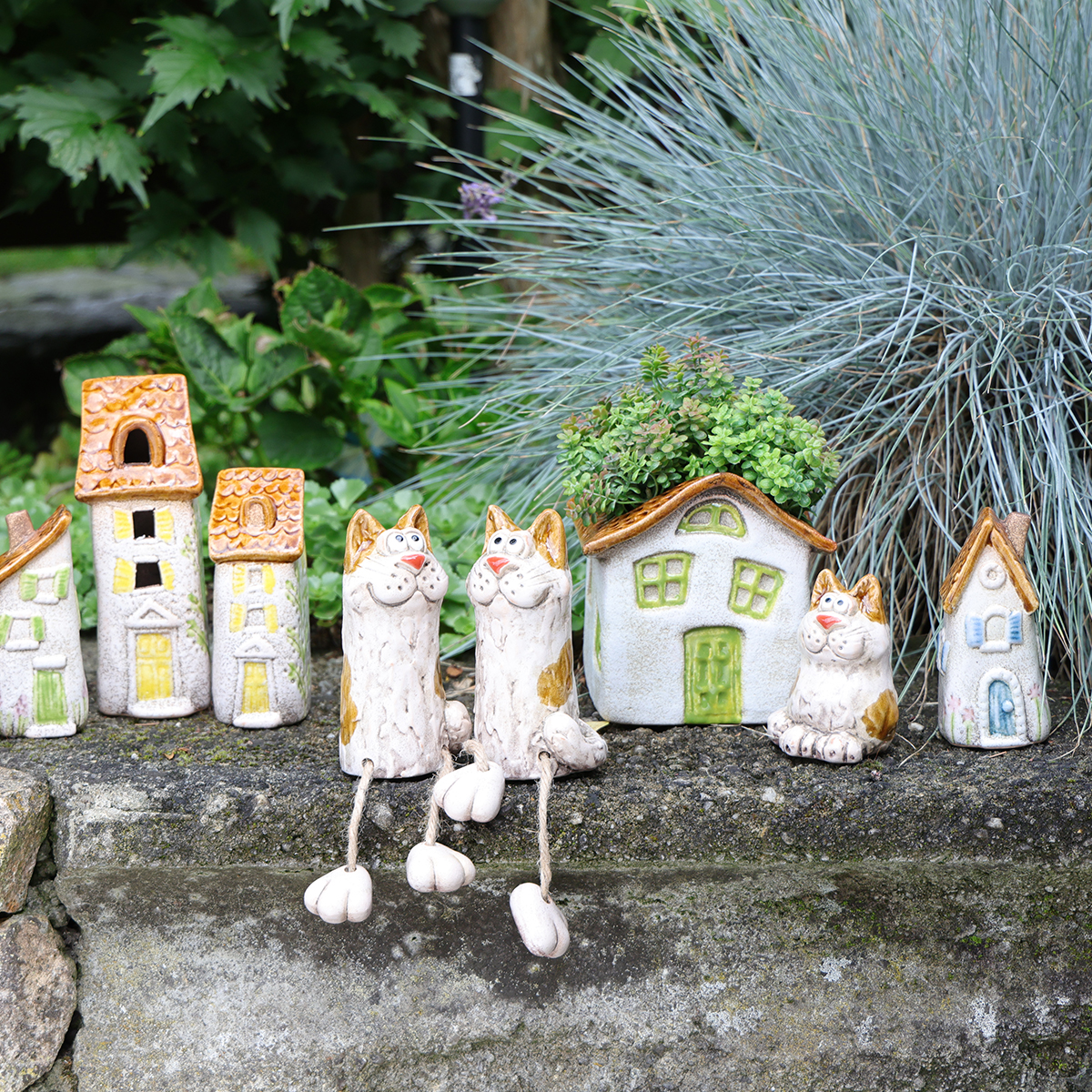 Rustykalny styl tych ceramicznych domków idealnie wpasowuje się w klasyczne, skandynawskie lub boho wnętrza. Żywe kolory – od delikatnych, naturalnych tonów po subtelne akcenty – sprawiają, że każdy domek jest wyjątkowy. Dla tych, którzy preferują bardziej kolorowe aranżacje: ten styl idealnie nadaje się do tworzenia zabawnych, żywych pomysłów na dekorację. Domki można również wykorzystać do tworzenia tematycznych scen, na przykład za pomocą małych figurek, drewnianych dekoracji lub świateł. Możliwości są nieograniczone!