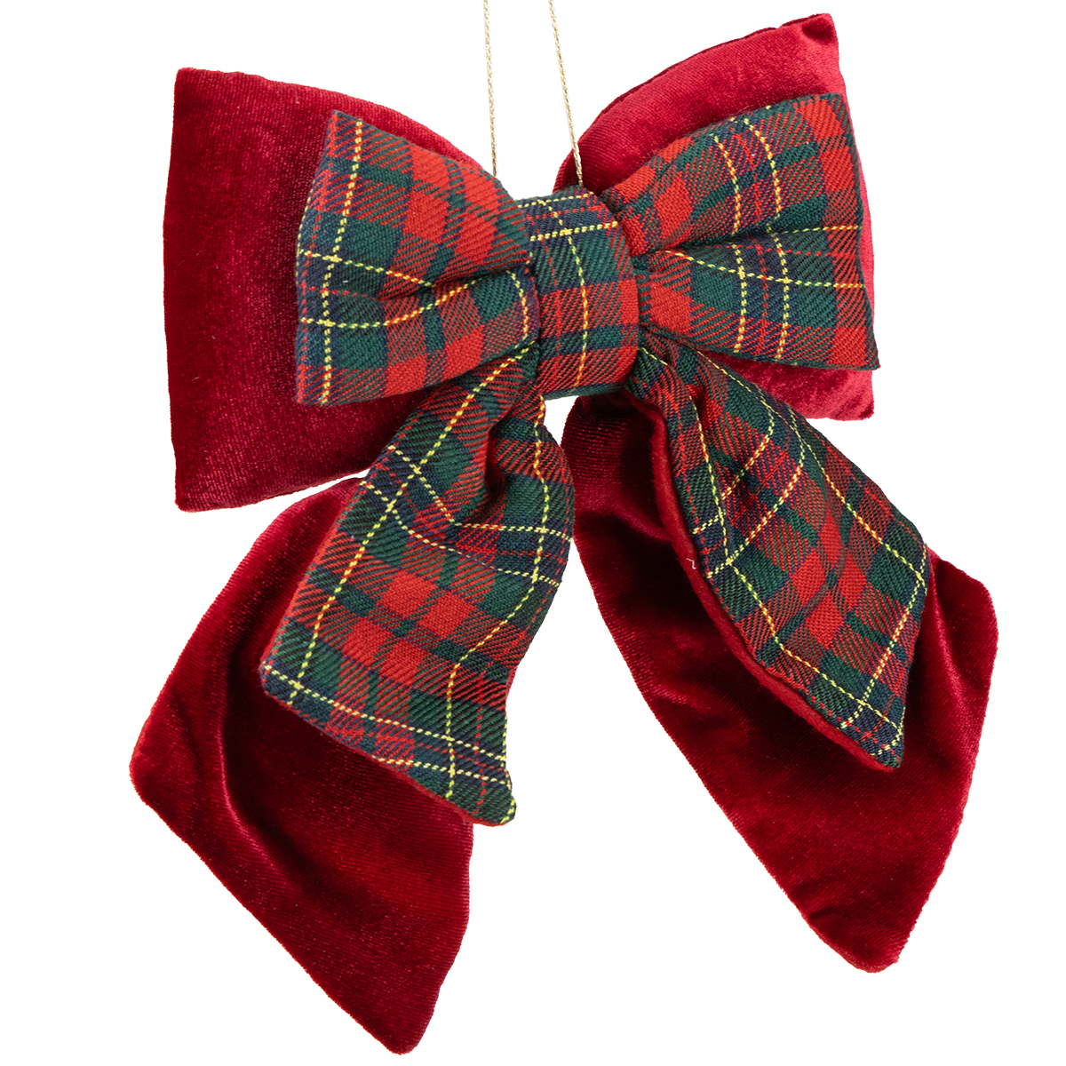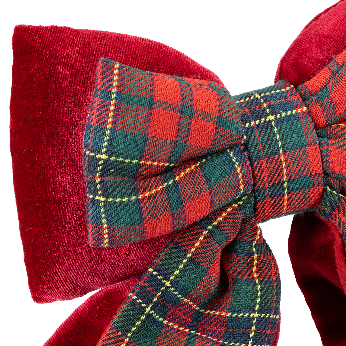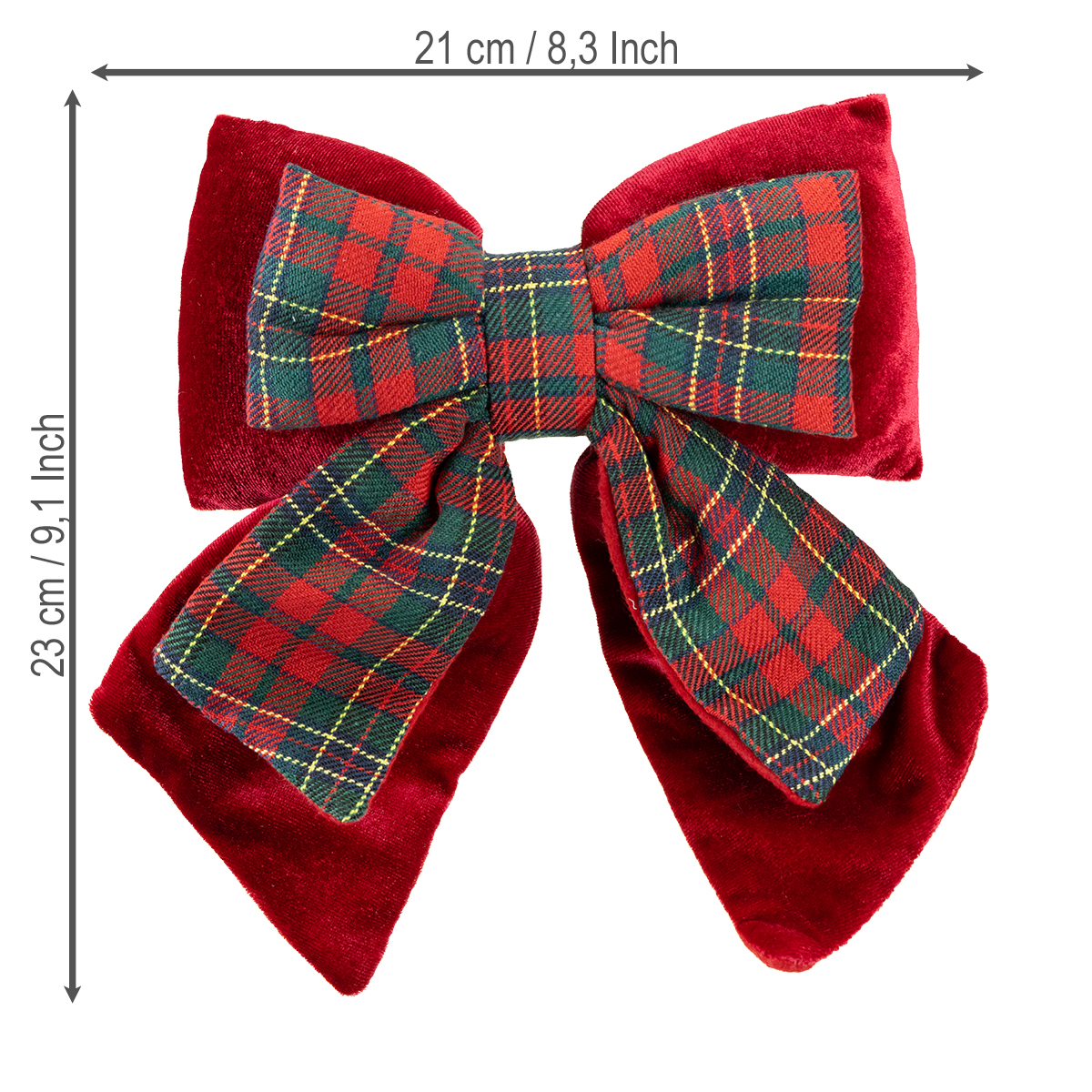 Nazwa produktu: Czerwona szkocka krata aksamitna kokarda do użytku wewnątrz 21×23 cm
