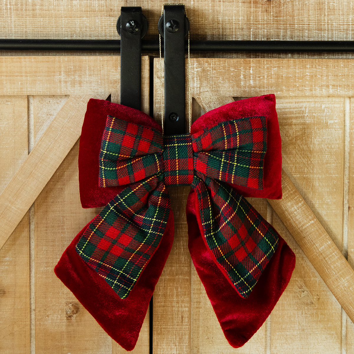 Czerwona szkocka krata aksamitna kokarda do użytku wewnątrz 21×23 cm