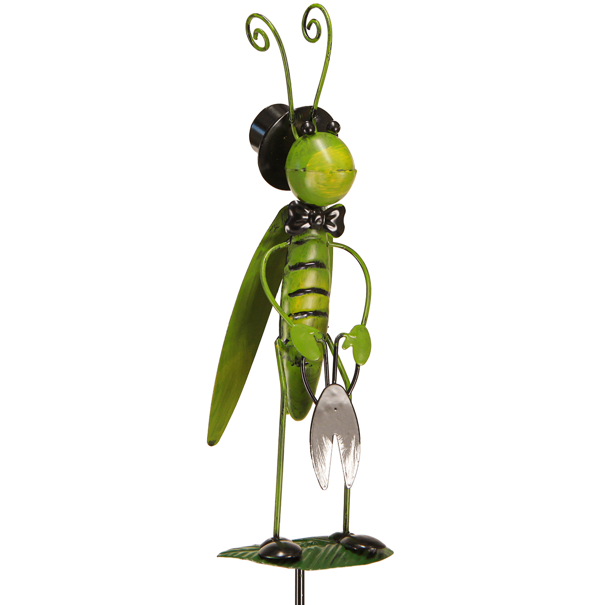 - Wysokiej jakości figurka ogrodowa w kształcie konika polnego wykonana z metalu