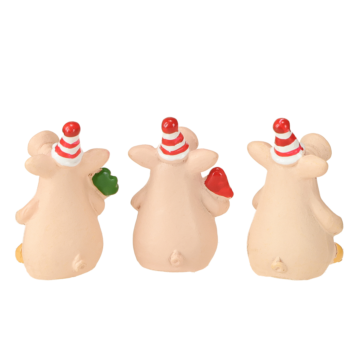 Ta szczęśliwa świnka z amuletami urzeka od pierwszego wejrzenia. Miniaturowe świnki, każda o wysokości około 5 cm, są bogato zdobione i starannie ręcznie malowane – prawdziwa uczta dla oczu! Dekoracyjne świnki, jako siedzące figurki, są dostępne w zestawie składającym się z sześciu różnych amuletów. Niezależnie od tego, czy jest to czterolistna koniczyna, grzyb czy podkowa, każda świnka dumnie nosi inny, tradycyjny amulet. Pasiaste czapki świnek dodają im wyjątkowo świątecznego charakteru – idealnego na sylwestrową imprezę! Mała samoprzylepna kropka na spodzie zapewnia, że świnki pewnie trzymają się na miejscu i nie zsuwają się łatwo. Po prostu fantastyczne w połączeniu z innymi świątecznymi dodatkami od Floristik24 – co powiesz na olśniewające świeczniki lub olśniewające lampki choinkowe?