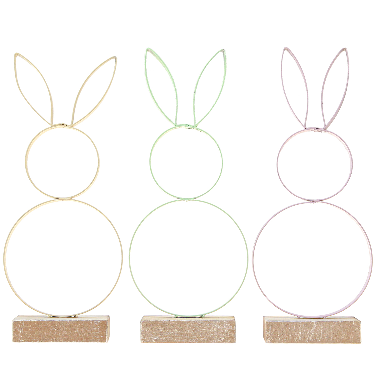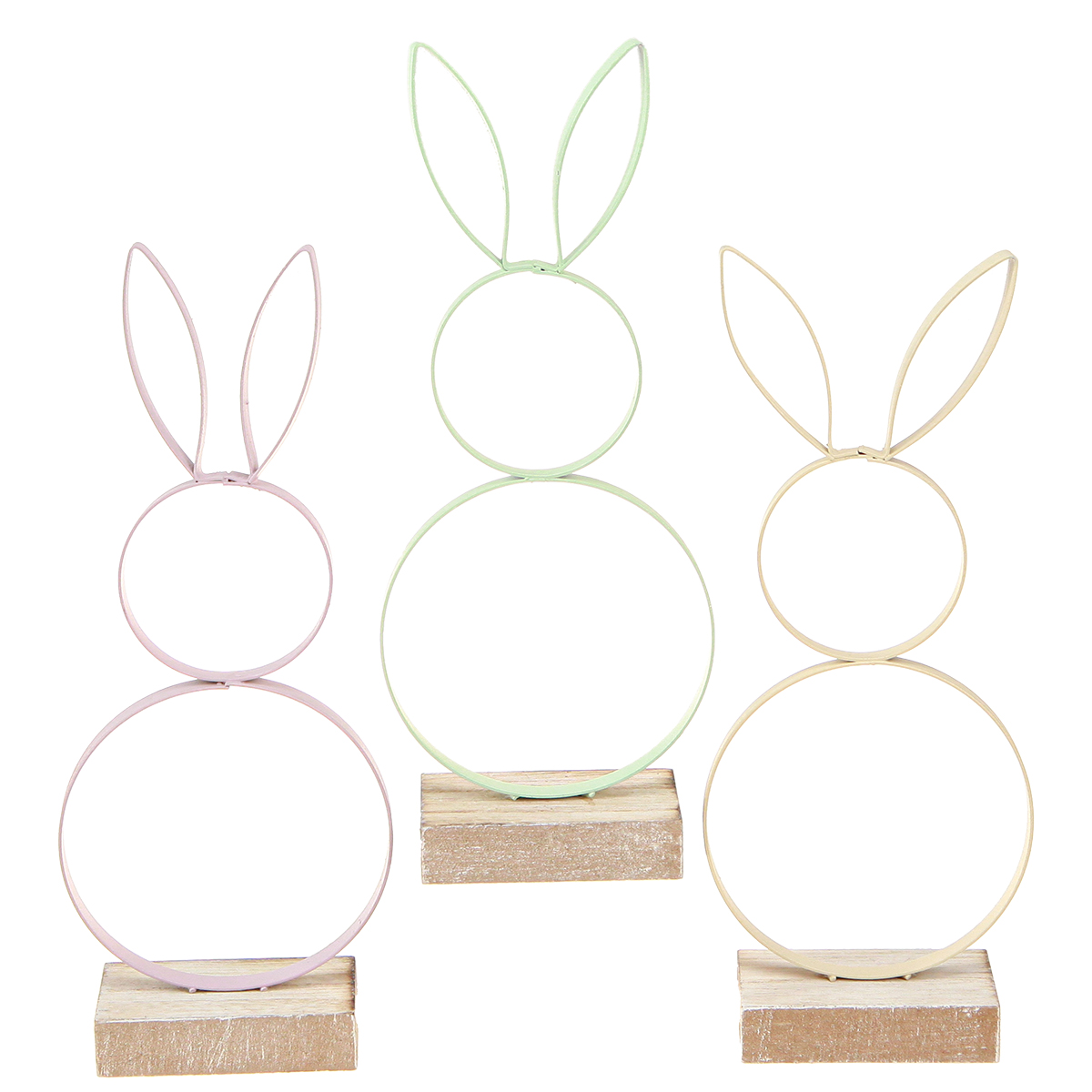Nazwa produktu: Dekoracja Zając Wielkanocny Metal Drewno Żółty Mięta Różowy H21cm 3 szt