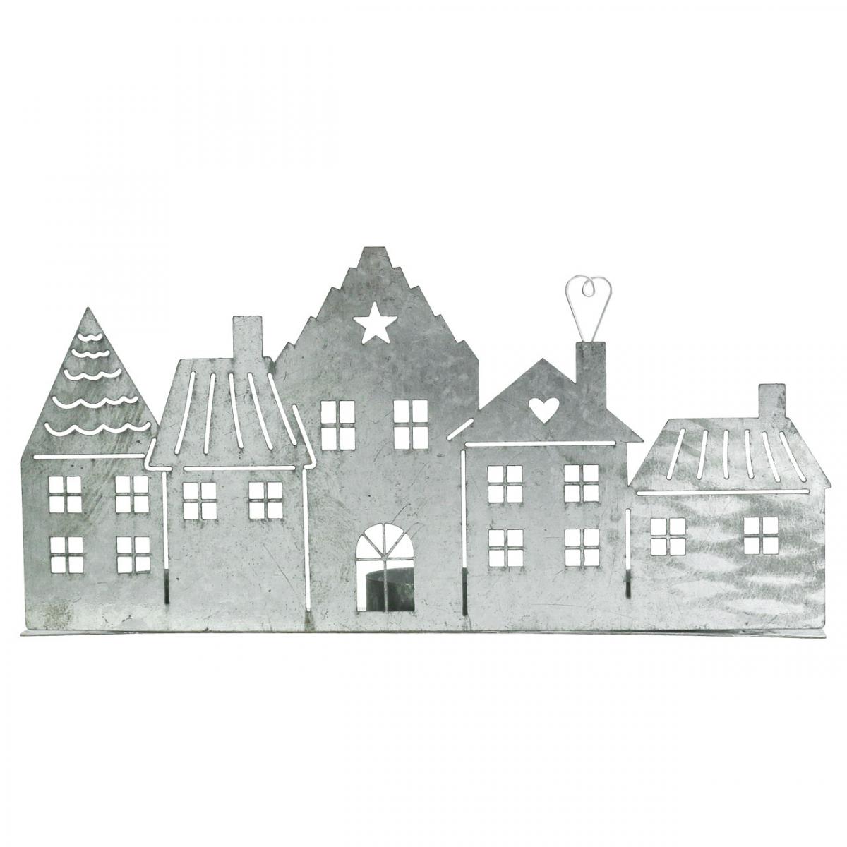 Nazwa produktu: Dekoracje świąteczne domki, świecznik metalowy srebrny 25cm