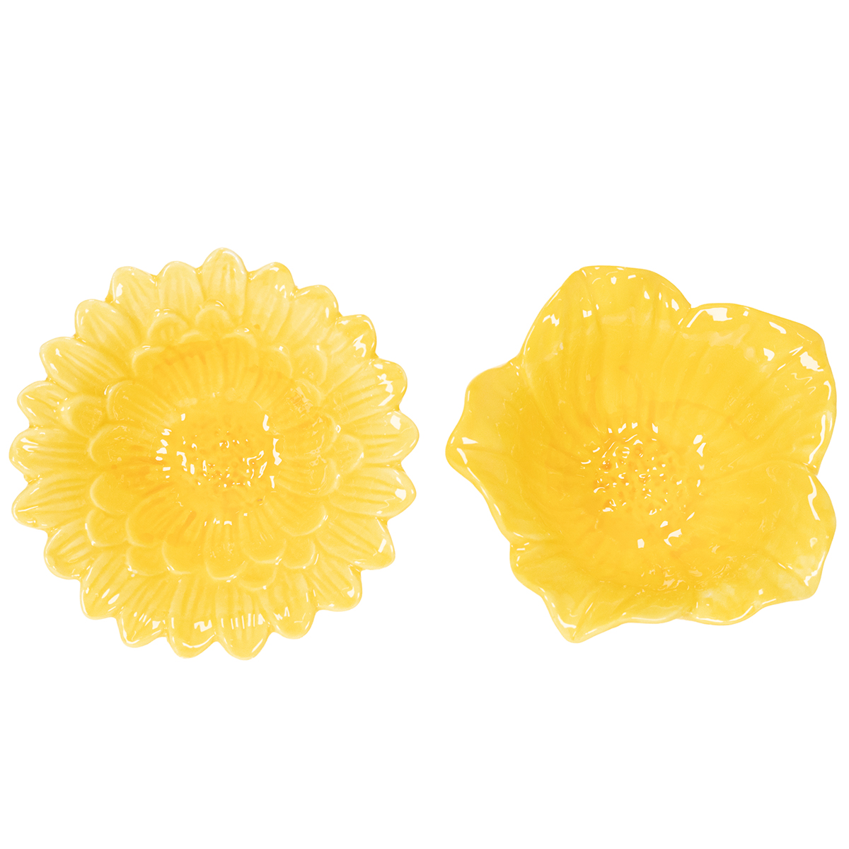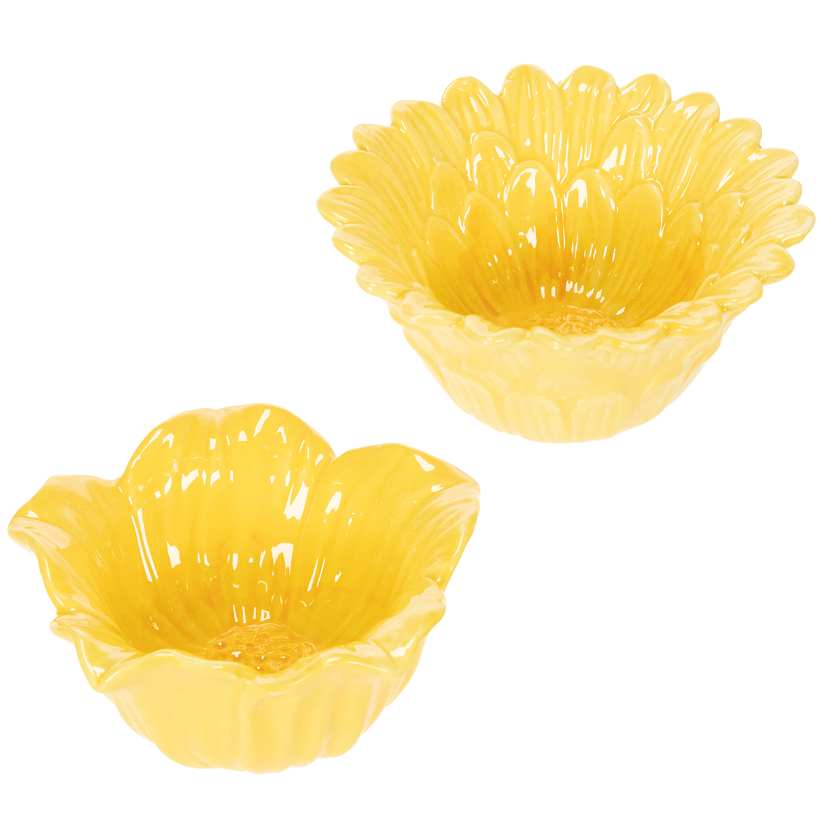 Kto nie lubi dodawać osobistego akcentu do swojego domu za pomocą drobnych detali? Te dekoracyjne, żółte, ceramiczne misy na kwiaty to idealny dodatek, który natychmiast doda świeżości i stylowej dekoracji Twojego domu. Dzięki uroczemu, kwiatowemu wzorowi w żywej żółci i wysokiej jakości ceramice, wniosą nowoczesny akcent do Twojego domu. Idealne do kreatywnych kompozycji kwiatowych, jako uroczy pomysł na prezent lub po prostu do wyeksponowania drobnych elementów dekoracyjnych. Uwaga: te przyciągające wzrok drobiazgi nie nadają się do kontaktu z żywnością. Wyobraź sobie misy wypełnione suszonymi kwiatami, używane jako podgrzewacze lub jako dodatek do wiosennych dekoracji w salonie – z pewnością przyciągną wzrok!
