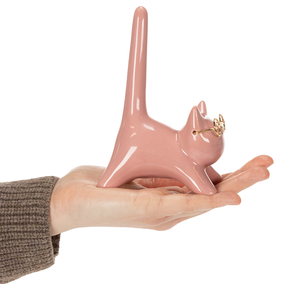 Kto powiedział, że Twój dom nie może być małym dziełem sztuki? Ta urocza różowa figurka kota doda wyjątkowego charakteru każdemu pomieszczeniu! Ta dekoracyjna figurka kota zachwyca kunsztem wykonania i nowoczesnym wyglądem. Niezależnie od tego, czy umieścisz ją na stoliku nocnym, półce w łazience, czy jako centralny element wiosennej aranżacji stołu, z pewnością przyciągnie wzrok. Idealna dla miłośników stylowych ceramicznych rzeźb, łączy praktyczność z estetycznym szykiem. Chcesz mieć swoją ulubioną biżuterię w zasięgu ręki? Żaden problem! Elegancki, zakrzywiony do góry ogon figurki oferuje miejsce na pierścionki i inne drobne akcesoria. Po prostu pomysłowa i piękna!