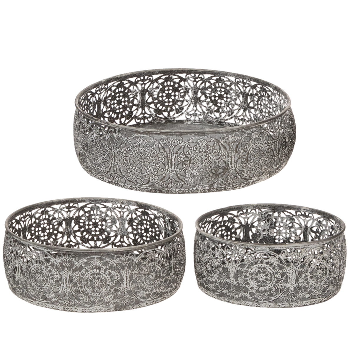 Dekoracyjna metalowa miska, wzór szaro-biały, Ø16/19,5/23,5 cm, zestaw 3 sztuk