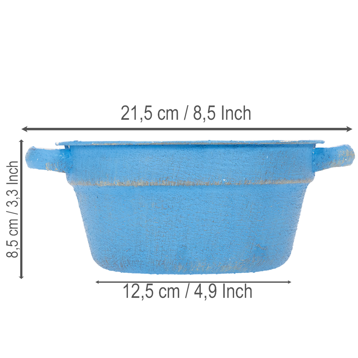 Dekoracyjna miska/doniczka, metal niebieski, dekoracja w stylu shabby chic, Ø17 cm, wys. 8,5 cm