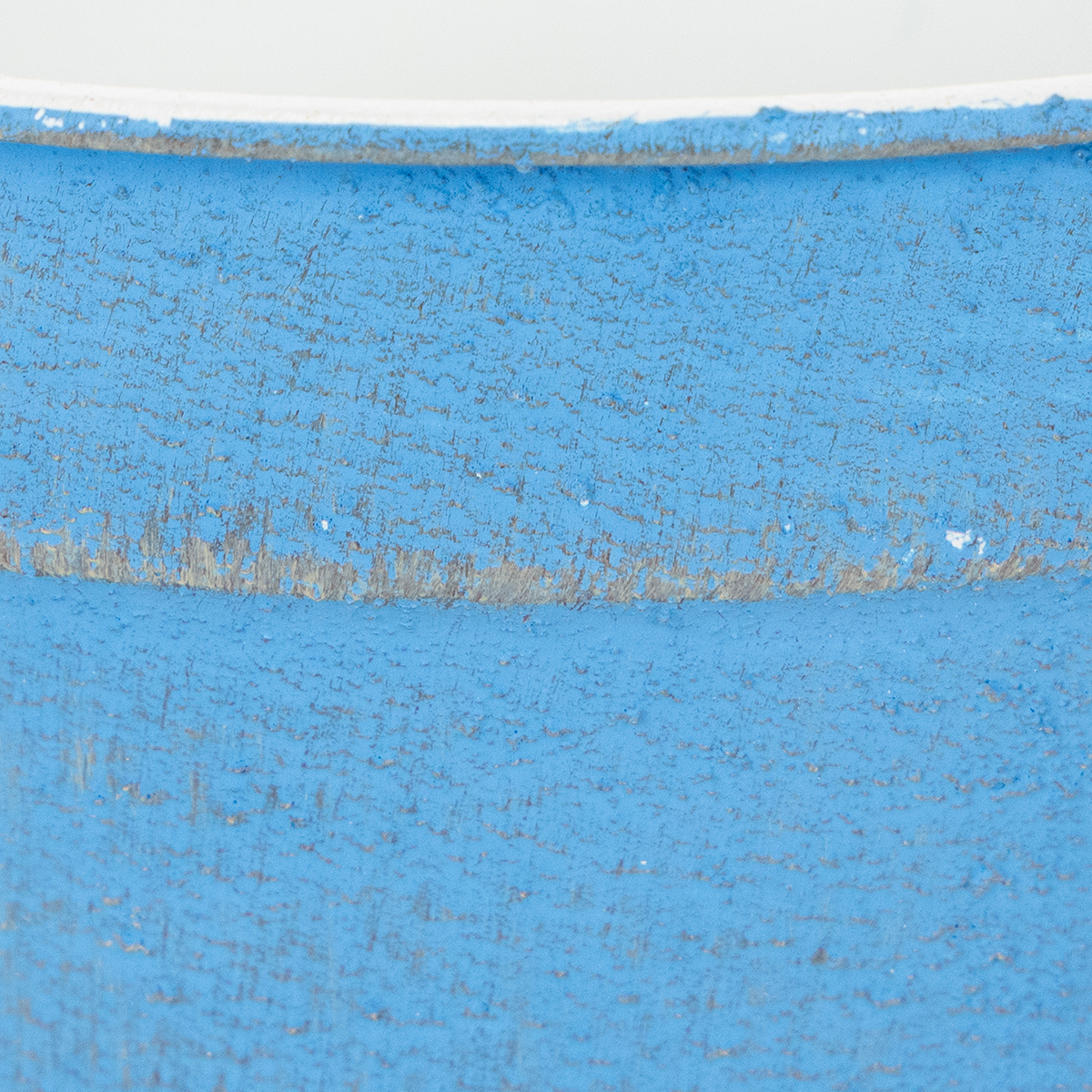 Dekoracyjna misa wykonana jest z cienkiego metalu, dzięki czemu jest bardzo lekka. Wewnątrz ozdobna doniczka jest biała, na zewnątrz metalowa dekoracja lśni najpiękniejszym błękitem. Dzięki szorstkiej powierzchni i szarym akcentom donica wygląda autentycznie staro. Koralik i dwa małe uchwyty pozwalają w razie potrzeby ozdobić ozdobną miskę drutem lub wstążką z juty.