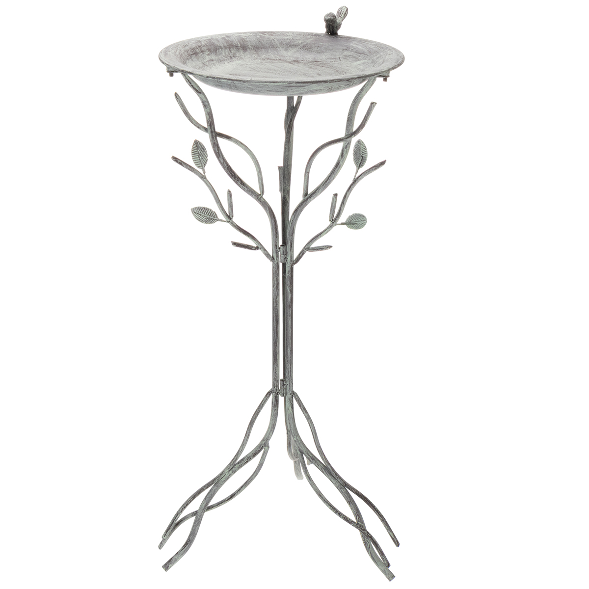Dekoracyjna ptasia kąpiel z delikatnym wzorem liści w stylu vintage, 74 cm