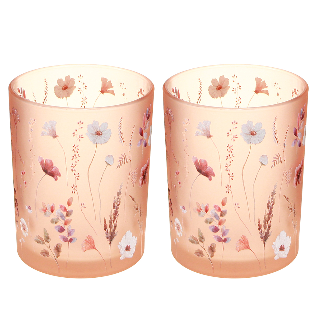 Dekoracyjna szklana latarnia z motywem kwiatowym do stylowych akcentów domowych, 12,5 cm, 2 sztuki