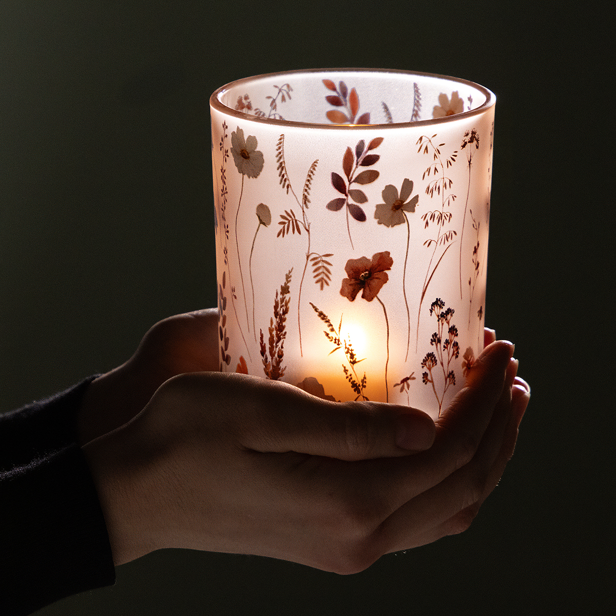 Szklany świecznik typu tealight z motywem kwiatowym – Kwiatowa elegancja dla każdego pomysłu na aranżację wnętrza