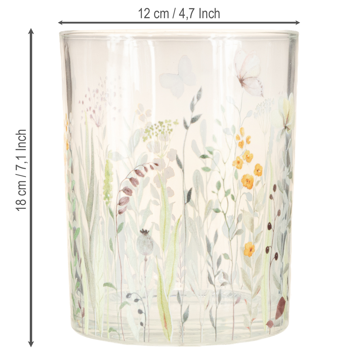 Nazwa produktu: Dekoracyjna szklana latarnia z motywem łąki motyli, stylowa ozdoba domu, 18 cm, 2 sztuki