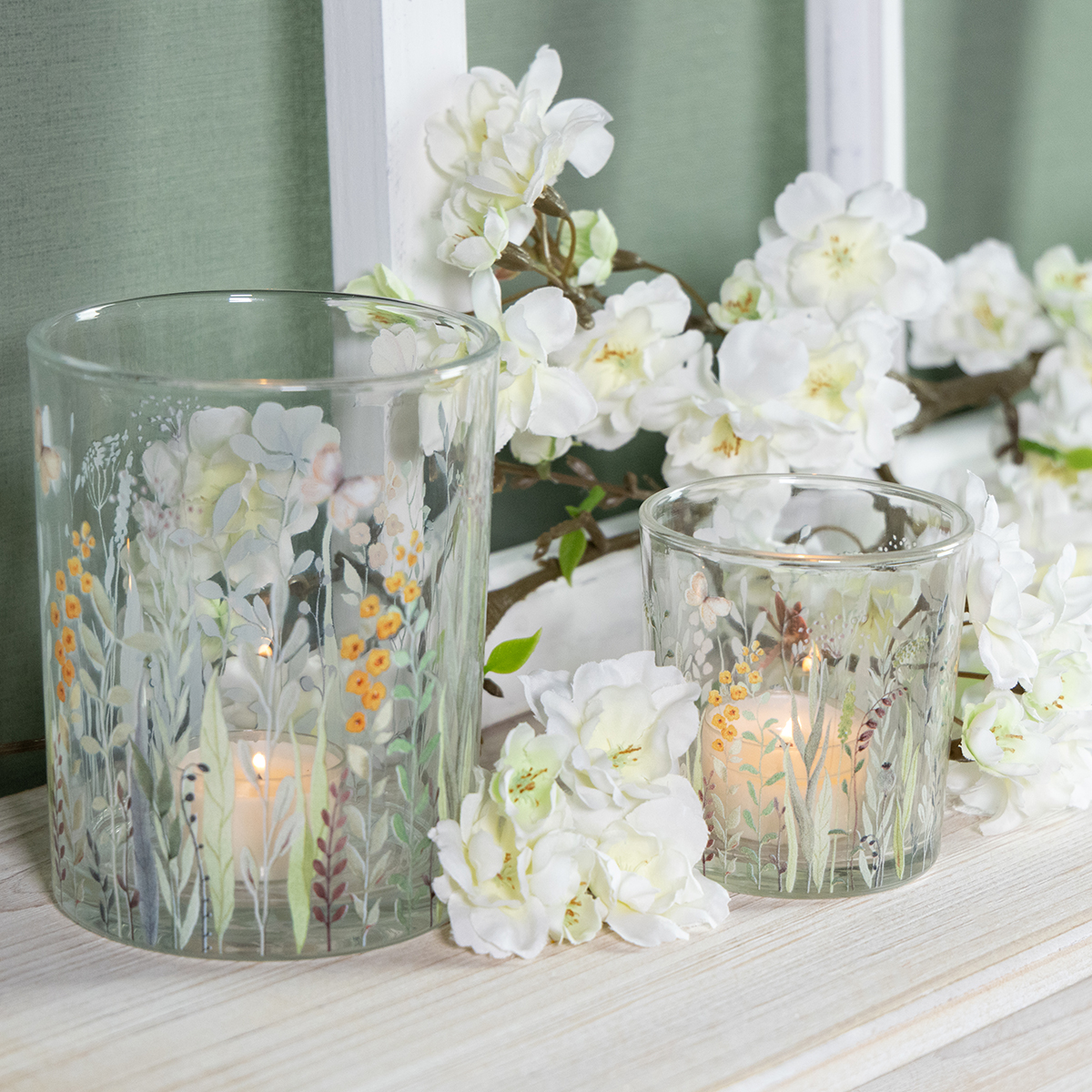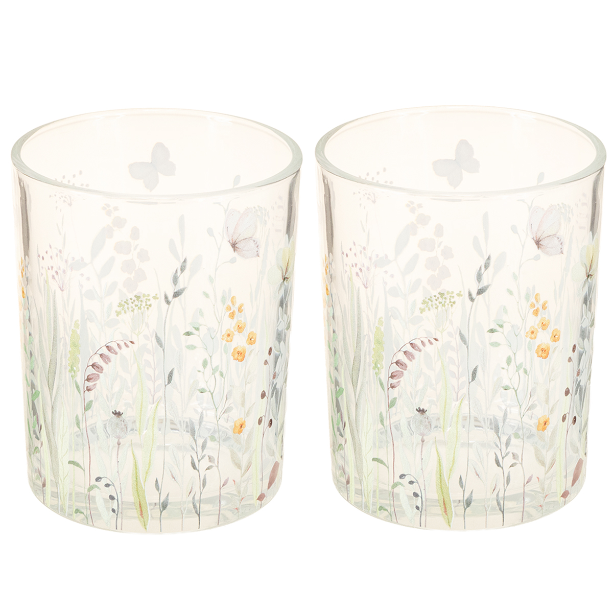 Dekoracyjna szklana latarnia z motywem łąki motyli, stylowa ozdoba domu, 18 cm, 2 sztuki