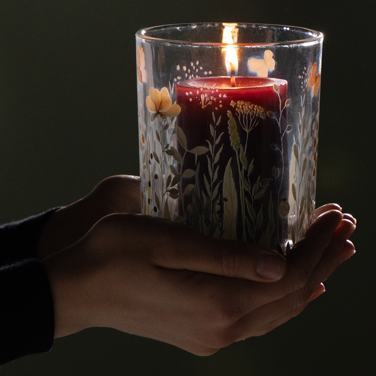 Ta szklana latarnia to coś więcej niż tylko dodatek do domu; to zaproszenie do relaksu. Pieczołowicie wykonany projekt z motylami i delikatnymi motywami kwiatowymi emanuje dyskretną elegancją. Kolory – harmonijna gra bieli, beżu i kolorowych akcentów – idealnie uzupełniają nowoczesny, skandynawski, a nawet romantyczny, rustykalny wystrój. Latarnia zawsze zachowuje przyjemną, subtelną obecność, jednocześnie ożywiając pomieszczenie. Można ją eksponować samodzielnie lub połączyć z innymi latarniami o różnej wysokości, aby stworzyć zabawny efekt świetlny. Wskazówka: Jako element letniej aranżacji stołu ze świeżymi kwiatami lub drobnymi, naturalnymi materiałami, będzie prawdziwą ozdobą. Zapewnia również nastrojowe oświetlenie na balkonie lub w ogrodzie wieczorami – idealne na ciepłe, letnie noce.