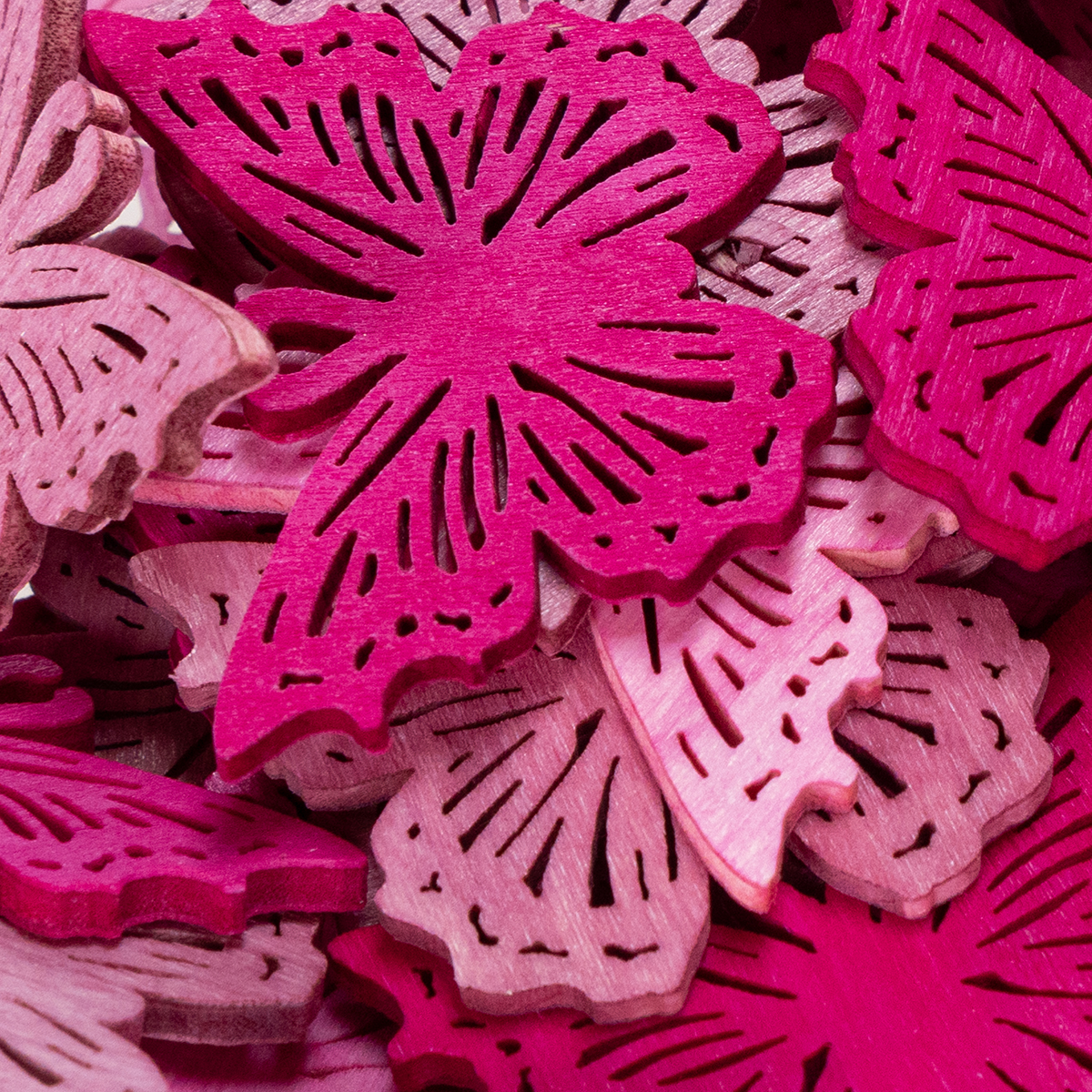 Te dekoracje w kształcie motyli, wykonane z wysokiej jakości drewna, mają 4 cm i są dostępne w wygodnym opakowaniu 72 sztuk. To wystarczy, aby udekorować kilka stołów, mis, a nawet większe ekspozycje. Delikatna i wiosenna kolorystyka w odcieniach różu, różu i liliowego przyciąga wzrok, nie będąc ani krzykliwym, ani nudnym. Zwolennicy bardziej naturalnego wyglądu pokochają delikatne usłojenie drewna i delikatny wzór skrzydeł. Motyle idealnie pasują do nowoczesnych i klasycznych stylów dekoracji, ale równie dobrze prezentują się w aranżacjach w stylu shabby chic lub rustykalnym.