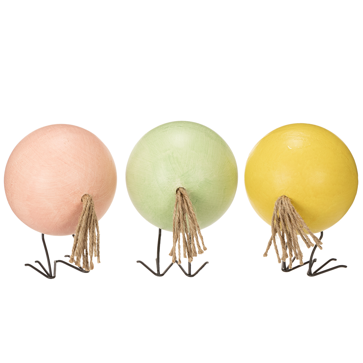 Te dekoracyjne kurczaczki zachwycają wysoką jakością wykonania i wszechstronnością. Połączenie naturalnych materiałów, takich jak drewno i metal, doskonale komponuje się z różnorodnymi stylami aranżacji wnętrz. Okrągły, drewniany korpus ma harmonijny i naturalny wygląd, a dziób i metalowe nogi tworzą elegancki kontrast. Subtelne, pastelowe kolory: żółty, różowy i zielony sprawiają, że kurczaczki te są ponadczasowym faworytem, który z łatwością można łączyć z innymi wiosennymi i wielkanocnymi dekoracjami.