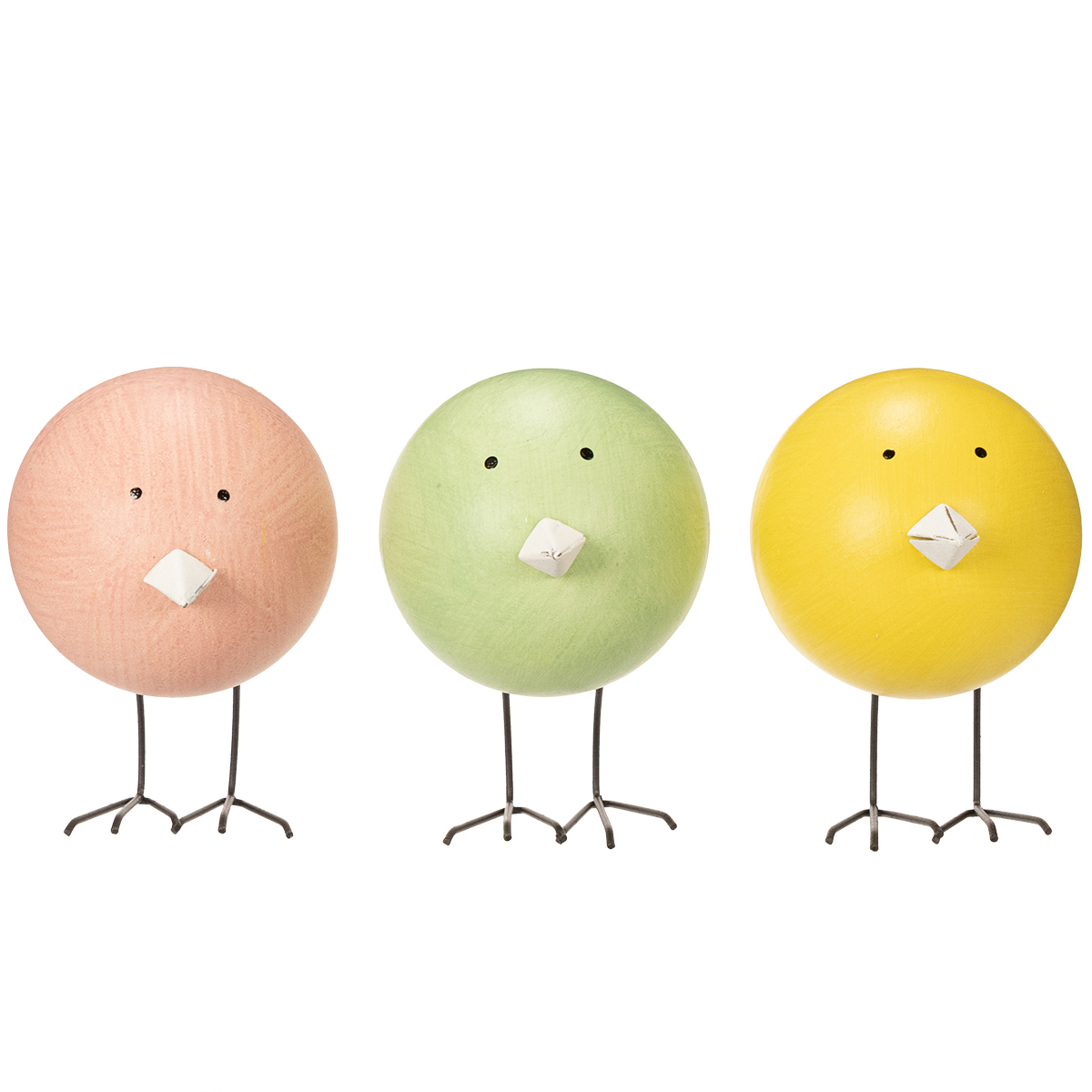 Szukasz pomysłowego sposobu na dodanie radosnego i wesołego akcentu do swojego domu? Nasze okrągłe figurki dekoracyjne w kształcie kurczaczków natychmiast rozjaśnią każde pomieszczenie. Czy to jako urocza wiosenna dekoracja stołu w jadalni, kolorowy dodatek do świątecznej zastawy, czy słodka ozdoba pokoju dziecięcego – te trzy małe figurki w kolorze żółtym, różowym i zielonym z pewnością wywołają uśmiech na twarzy każdego. Połączenie drewna w korpusach i metalu w dziobach i stopach nadaje kurczaczkom solidną podstawę i nowoczesny akcent.