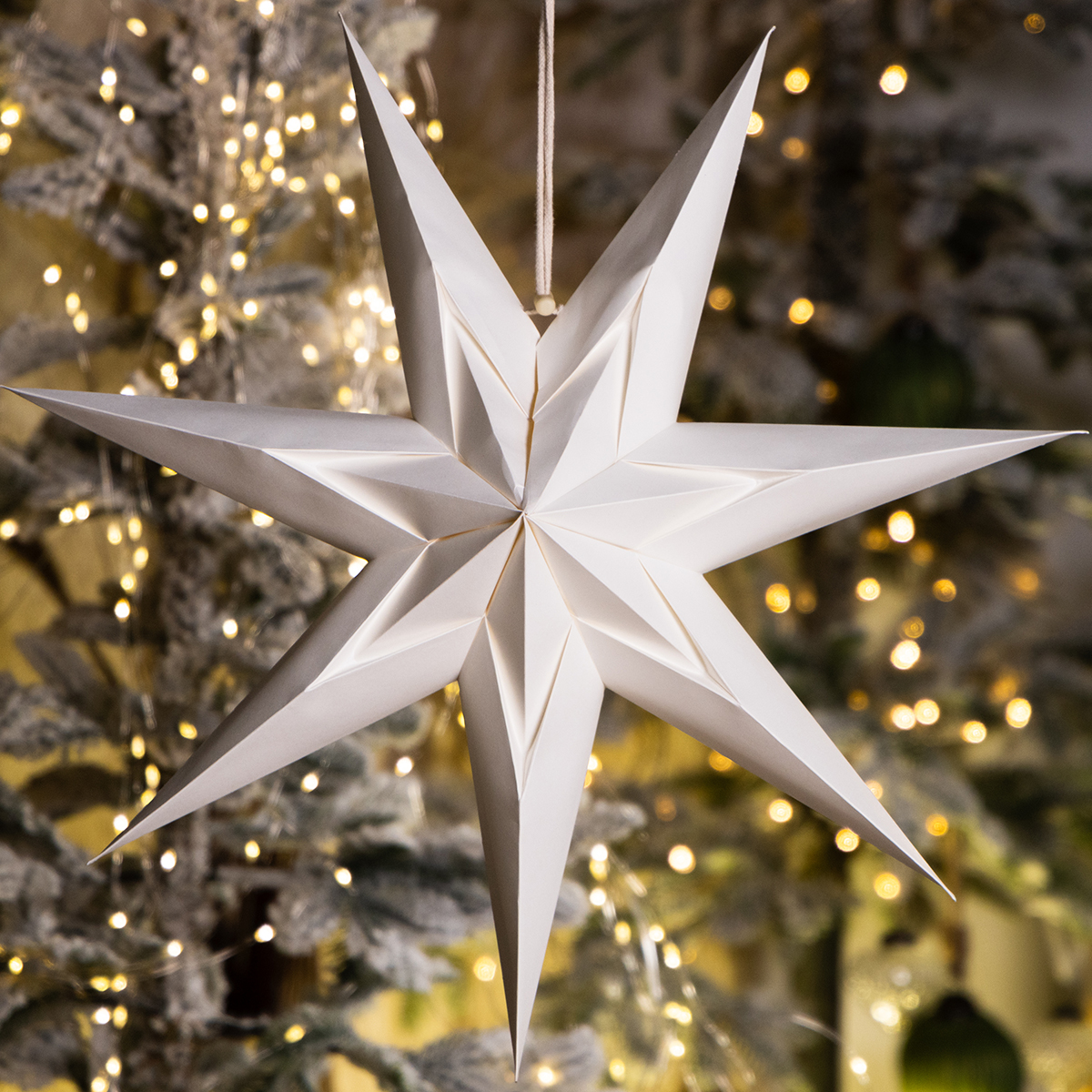 Wykonane z wytrzymałego, trwałego papieru, te dekoracyjne gwiazdki emanują naturalnością i minimalizmem. Pasujący bawełniany sznurek ze zintegrowanym ogranicznikiem jest zarówno praktyczny, jak i atrakcyjny wizualnie. Ten starannie zaprojektowany system zawieszania ułatwia ustawienie gwiazdek i gwarantuje idealne wyrównanie.