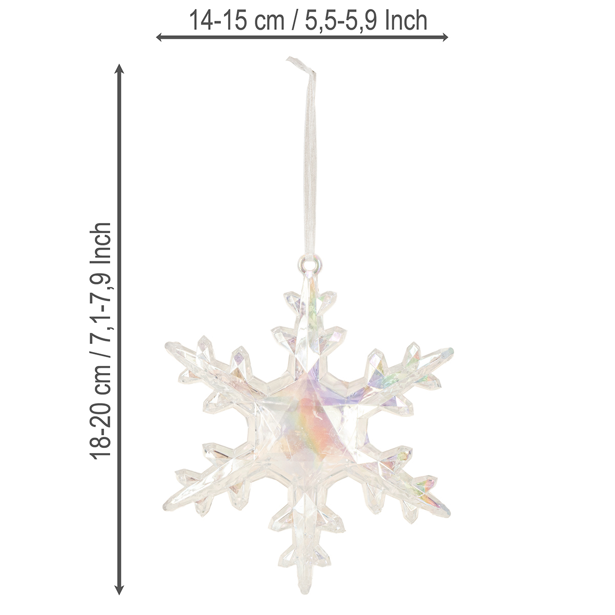 Nazwa produktu: Dekoracyjne płatki śniegu, dekoracja zimowa, tęczowe, Ø14–15 cm, 2 sztuki