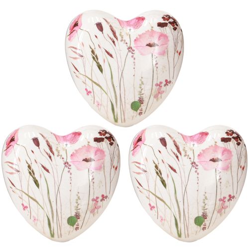 Nasze dekoracyjne ceramiczne serca są doskonałym wyborem dla każdego, kto chce dodać odrobinę uroku w stylu vintage swojemu domowi lub na specjalne okazje. Te trzy serca zachwycają wyjątkowym efektem trzasków, który wywołuje nostalgiczne wrażenie przypominające minione czasy. Każde serce ma kremową powierzchnię, poprzecinaną fascynującymi pęknięciami i ozdobioną różowymi makami na łące. Taka dbałość o szczegóły sprawia, że są one idealną ozdobą stołu w lecie i doskonale wpisują się w aranżacje w stylu rustykalnym. Gładka polewa nadaje sercom atrakcyjny wygląd i podkreśla ich połysk. Niezależnie od tego, czy umieścisz je na stole weselnym, na kolacji walentynkowej, czy też jako uroczą atrakcję przyjęcia w ogrodzie, te dekoracyjne serca są uniwersalne i można je łączyć z innymi produktami, takimi jak romantyczne bieżniki na stół i świeczniki z oferty Floristik24.