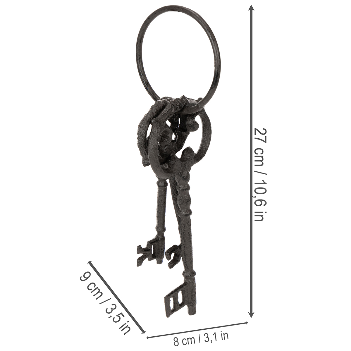 Chcesz dodać swojemu domowi wyjątkowego, czarującego akcentu? Spójrz na ten czarujący, dekoracyjny brelok z kluczami w stylu antycznym! Niezależnie od tego, czy umieścisz go na przytulnej komodzie, jako ozdobę ścienną, czy jako wyjątkowy dodatek do domu na stole – ten antyczny brelok do kluczy wniesie nutę nostalgii do każdego pomieszczenia. Misterny design i solidna metalowa konstrukcja sprawiają, że ten element dekoracyjny jest ponadczasowym, zabytkowym skarbem. Z trzema ozdobnymi kluczami zebranymi na jednym kółku, ten dodatek do domu przeniesie Cię w minioną epokę i będzie prawdziwą ozdobą.