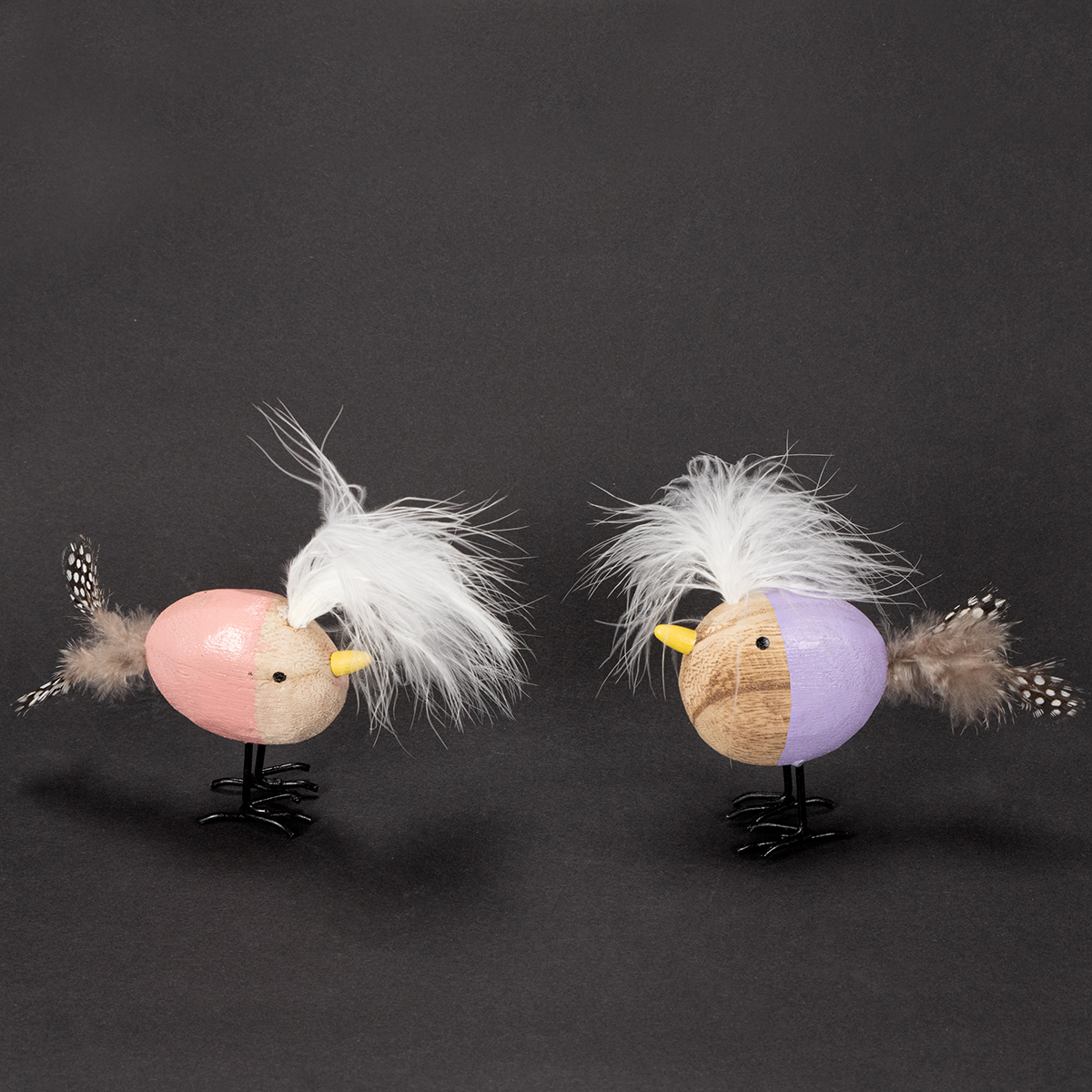 Każdy z naszych dekoracyjnych ptaków jest wykonany z prawdziwego drewna z dbałością o szczegóły. Delikatne, prawdziwe ptasie pióra sprawiają, że każdy egzemplarz jest wyjątkowy i ma naturalny urok. Te dekoracyjne, drewniane ptaki o wymiarach 10 cm długości, 3 cm szerokości i 9 cm wysokości idealnie sprawdzą się na zastawionym stole lub, wiosną, na parapecie. Połączenie fioletu i różu tworzy delikatną i radosną atmosferę – idealną do stworzenia przyjaznej i radosnej atmosfery.