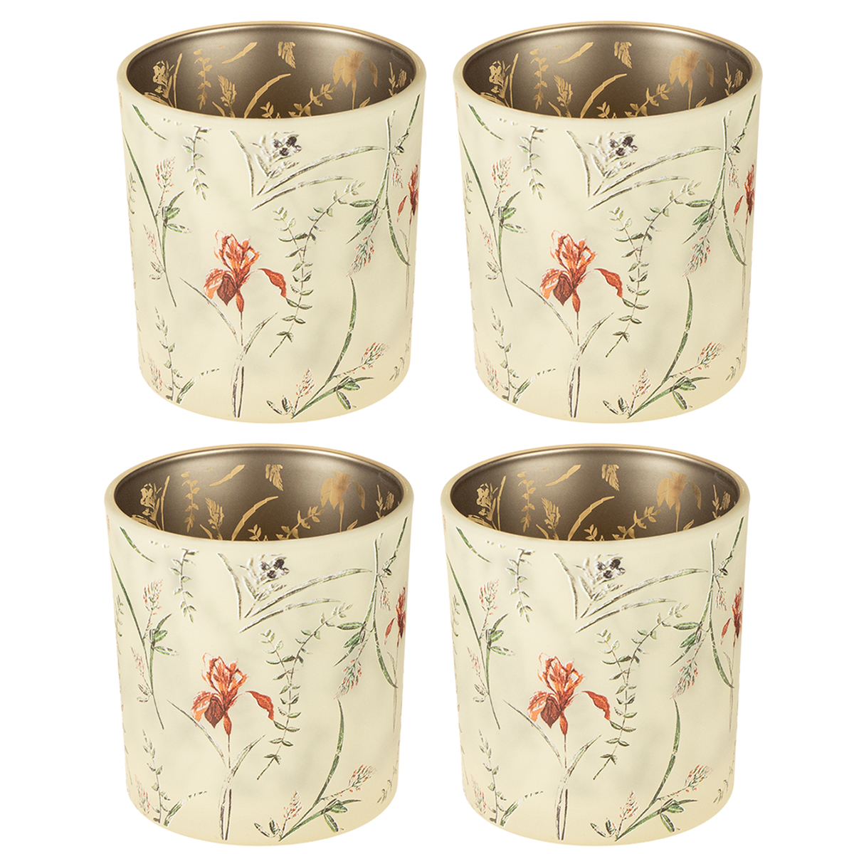 Dekoracyjny szklany lampion z motywem kwiatowym, stanowiący nastrojowy akcent w domu, 8 cm, 4 sztuki.