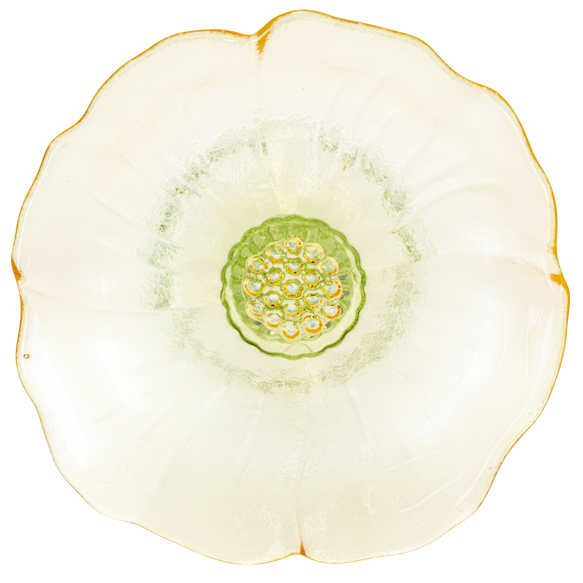 Ten piękny, świąteczny, szklany talerz dekoracyjny z nóżką przyciąga wzrok delikatnym, kwiatowym wzorem. Zielona, przezroczysta szklana podstawa elegancko podkreśla delikatne, żółte kwiaty i nadaje talerzowi lekkości i zwiewności. Użyj go do stylowego podania delikatnie zapakowanych słodyczy, małych ciastek lub ciasteczek. Dzięki ponadczasowemu wzornictwu, talerz idealnie pasuje zarówno do nowoczesnych, jak i rustykalnych aranżacji. Idealny na specjalne okazje, takie jak wesela, Wielkanoc czy urodziny – lub po prostu jako element codziennej aranżacji stołu.