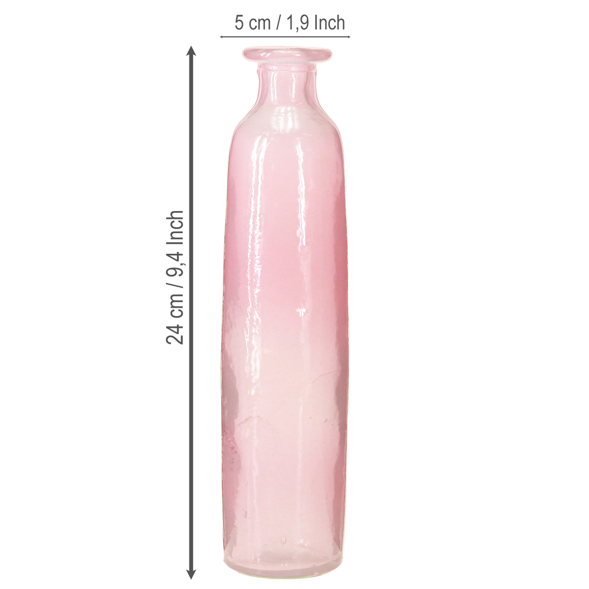 Dekoracyjny wazon na kwiaty butelka szkło różowy rustykalny Ø6cm wys.24cm