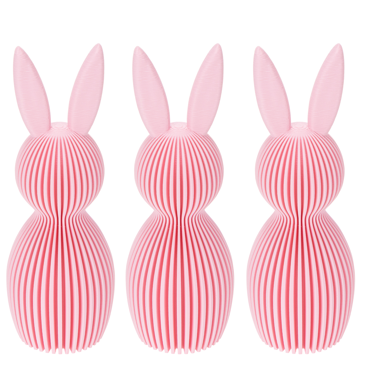 Trzyczęściowe opakowanie sprawia, że jest wyjątkowo wszechstronny. Możesz podzielić króliczki i umieścić je w różnych miejscach lub wyeksponować je razem, tworząc piękną kompozycję. Szukasz pomysłu na wielkanocny prezent? Zapakowane w ładne pudełko lub w zestawie z kartką, te króliczki będą również uroczym drobnym upominkiem. Po prostu urocze i proste rozwiązanie na wiosenne dekoracje!