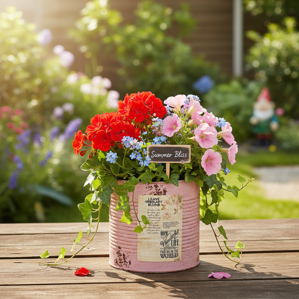Doniczka w kolorze ciemnego różu wprowadza latem nastrój vintage! Okrągła donica od razu rzuca się w oczy efektem rozpylonej rdzy i delikatnym pastelowym kolorem dekoracji stołu lub parapetu. Metalowa puszka dekoracyjna inspirowana jest puszką z recyklingu, ale nie ma ostrych krawędzi.