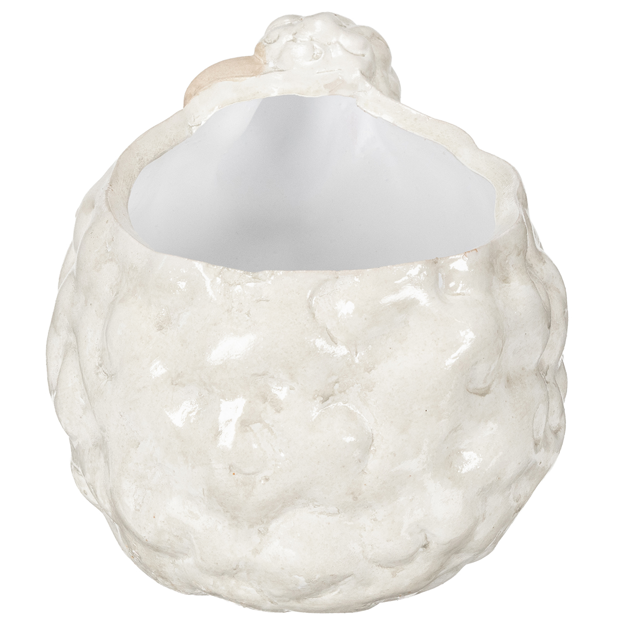 Ta ceramiczna doniczka w kształcie owcy została wykonana z wysokiej jakości białej ceramiki i starannie zaprojektowana, z puszystą fakturą i uroczą buzią. Ten ręcznie wykonany detal dodaje odrobinę figlarności i świeżości, nie będąc przy tym kiczowatym. Dzięki średnicy 17 cm i wysokości 13 cm, ta ozdoba jest wszechstronnym dodatkiem do roślin, pasującym nawet na wąskie półki czy parapety.