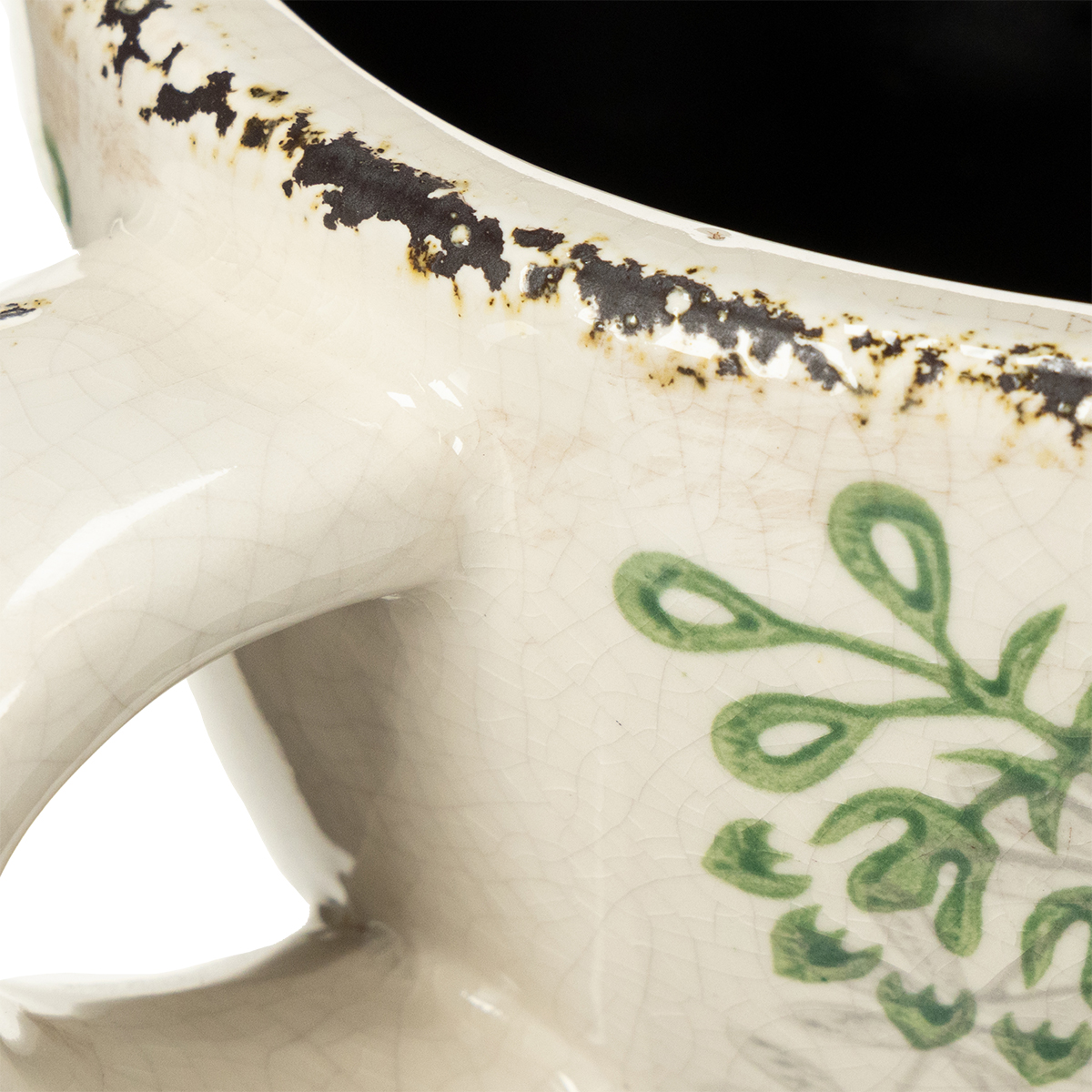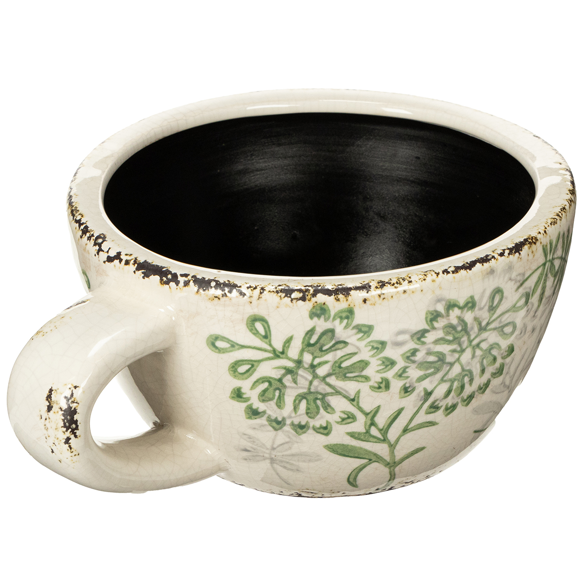 - Delikatny kwiatowy wzór w kolorze zielonym na białej ceramice