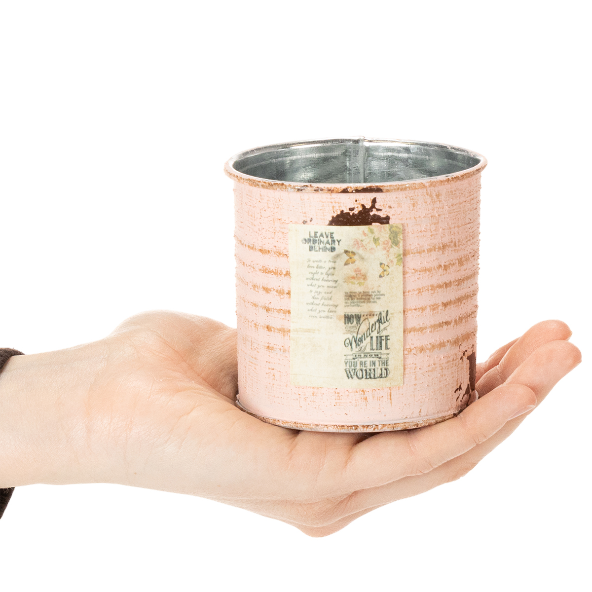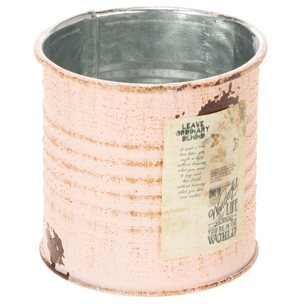Jako doniczka, ozdobne pudełko w łososiowej wersji z pewnością przyciągnie wzrok! Mała puszka wykonana z metalu jest pokryta srebrem wewnątrz i dwukolorową na zewnątrz farbą w stylu vintage. Drobne detale, takie jak nostalgiczna etykieta i pomalowane plamy rdzy, zamieniają metalowy garnek w staromodny przedmiot dekoracyjny.