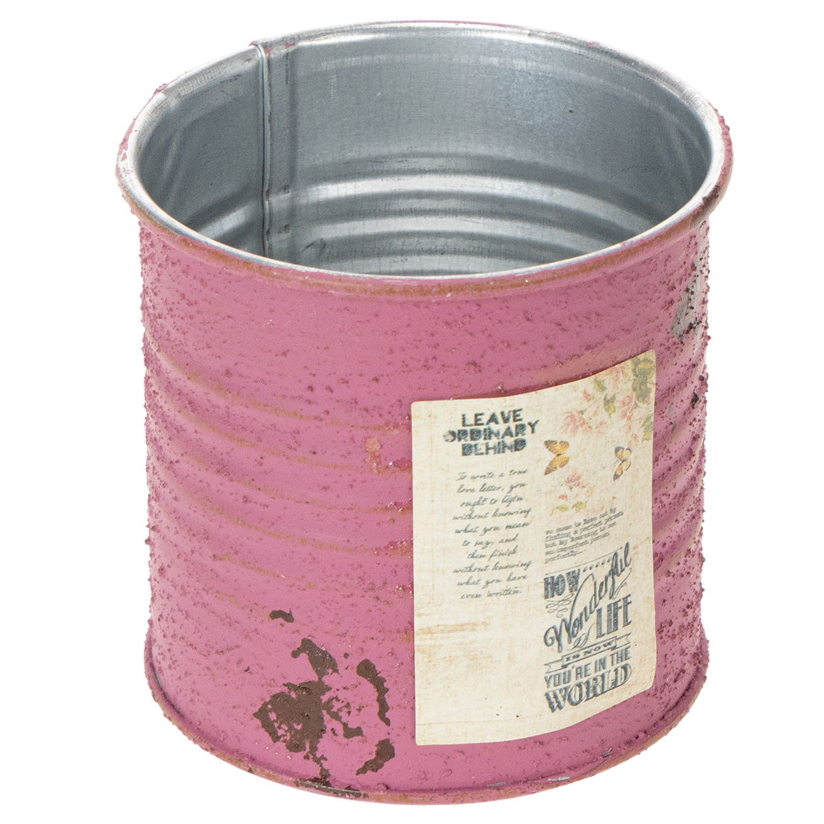 Pudełko na rośliny to okrągłe pudełko ozdobne w kolorze fioletowym. Doniczka wykonana w całości z metalu, wzorowana jest na modnej, rdzawej dekoracji w stylu vintage. Mała doniczka różni się od spryskanej puszki gładkimi krawędziami i szlachetnym rdzawym wyglądem, który uzyskuje się przez spryskiwanie i szczotkowanie powierzchni w dwóch kolorach. Dopełnieniem szlachetnego projektu są plamy rdzy i mała, nostalgiczna etykieta z wiosennym napisem w języku angielskim.