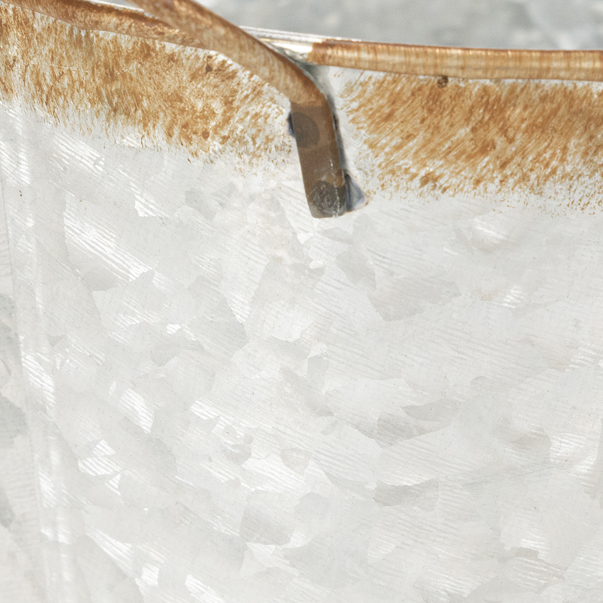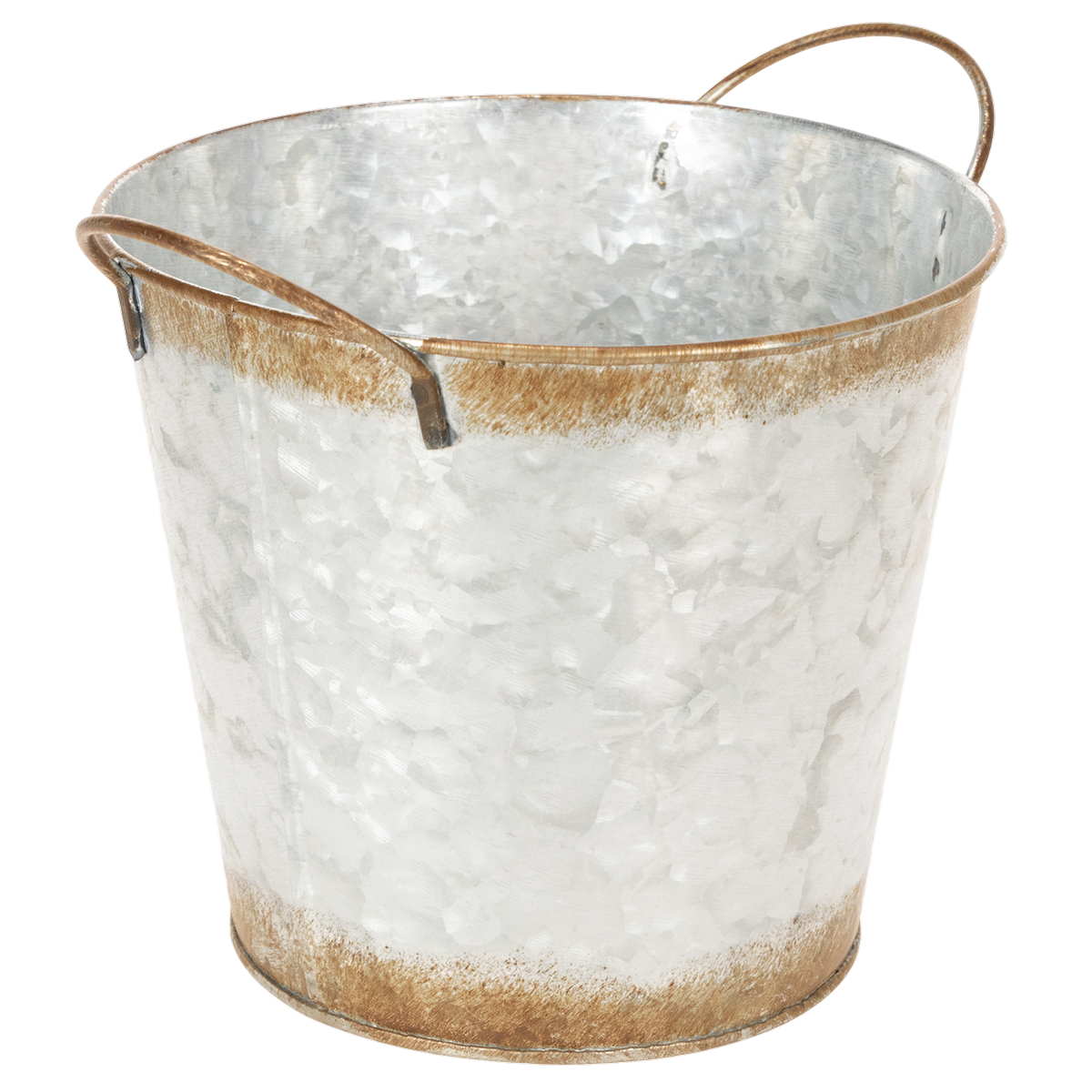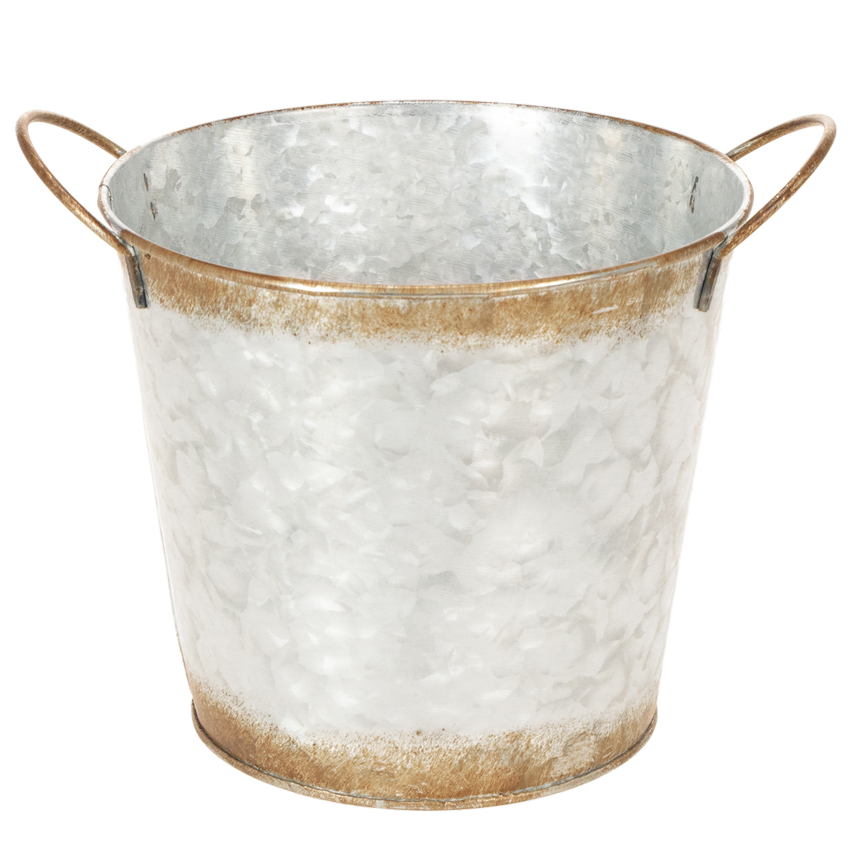 Doniczka dekoracyjna z uchwytami, wiaderko do sadzenia, pojemnik metalowy, kolor srebrny, stal patynowana, Ø17cm, wys. 16,5cm
