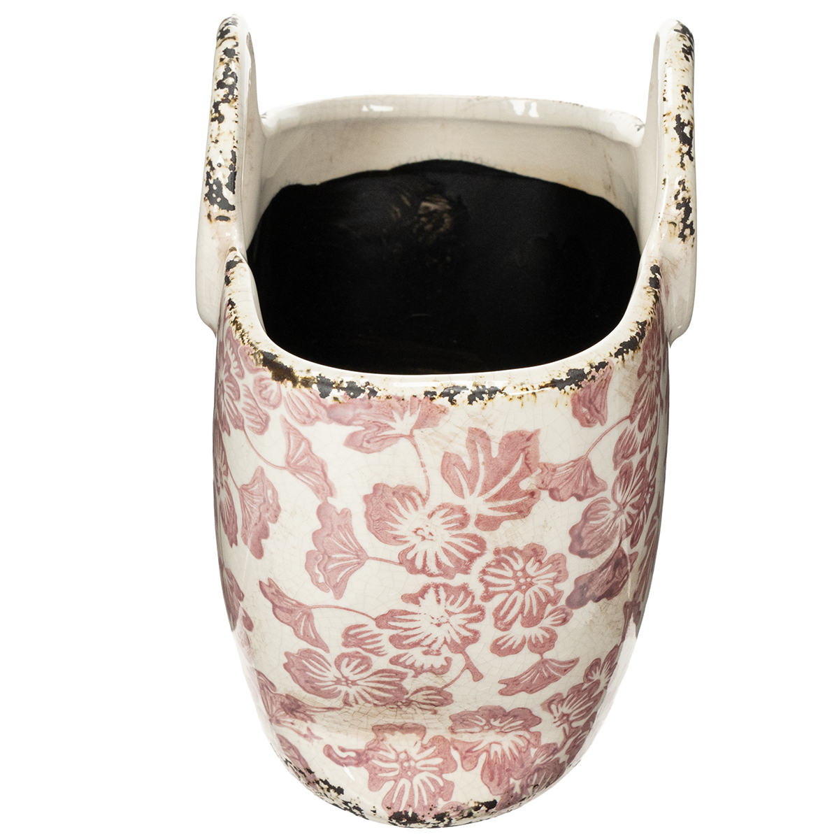 Doniczka dekoracyjna z uchwytem, kwiatowa, 21 cm