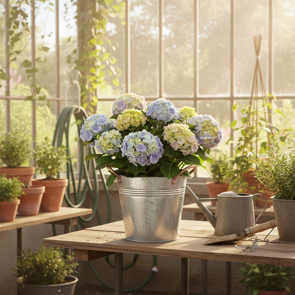 Uchwyty tego małego metalowego wiaderka w kolorze miedzi tworzą ekscytujący kontrast wizualny z ozdobnym wiadrem w kolorze srebrnym. Ocynkowana powierzchnia nadaje doniczce nieco nostalgiczny wygląd. Przed sadzeniem zaleca się wyłożenie metalowego pojemnika folią, aby zabezpieczyć wiadro przed korozją.