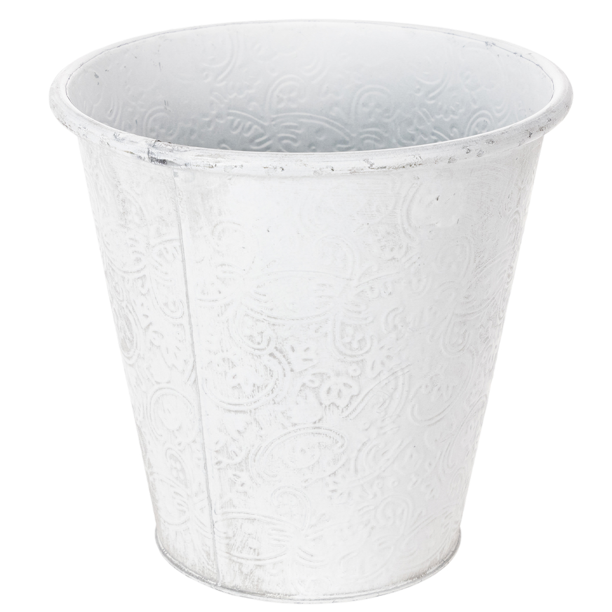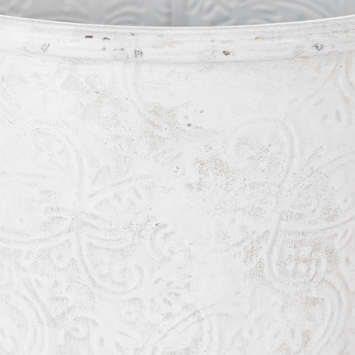 Doniczka, osłonka z ozdobami, metalowa dekoracja, kolor biały, szary Ø20,5cm wys.19,5cm