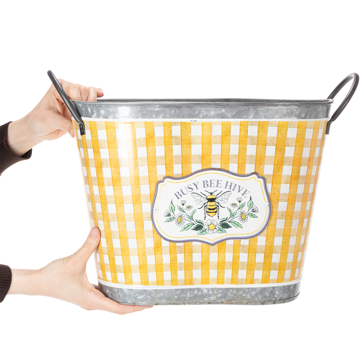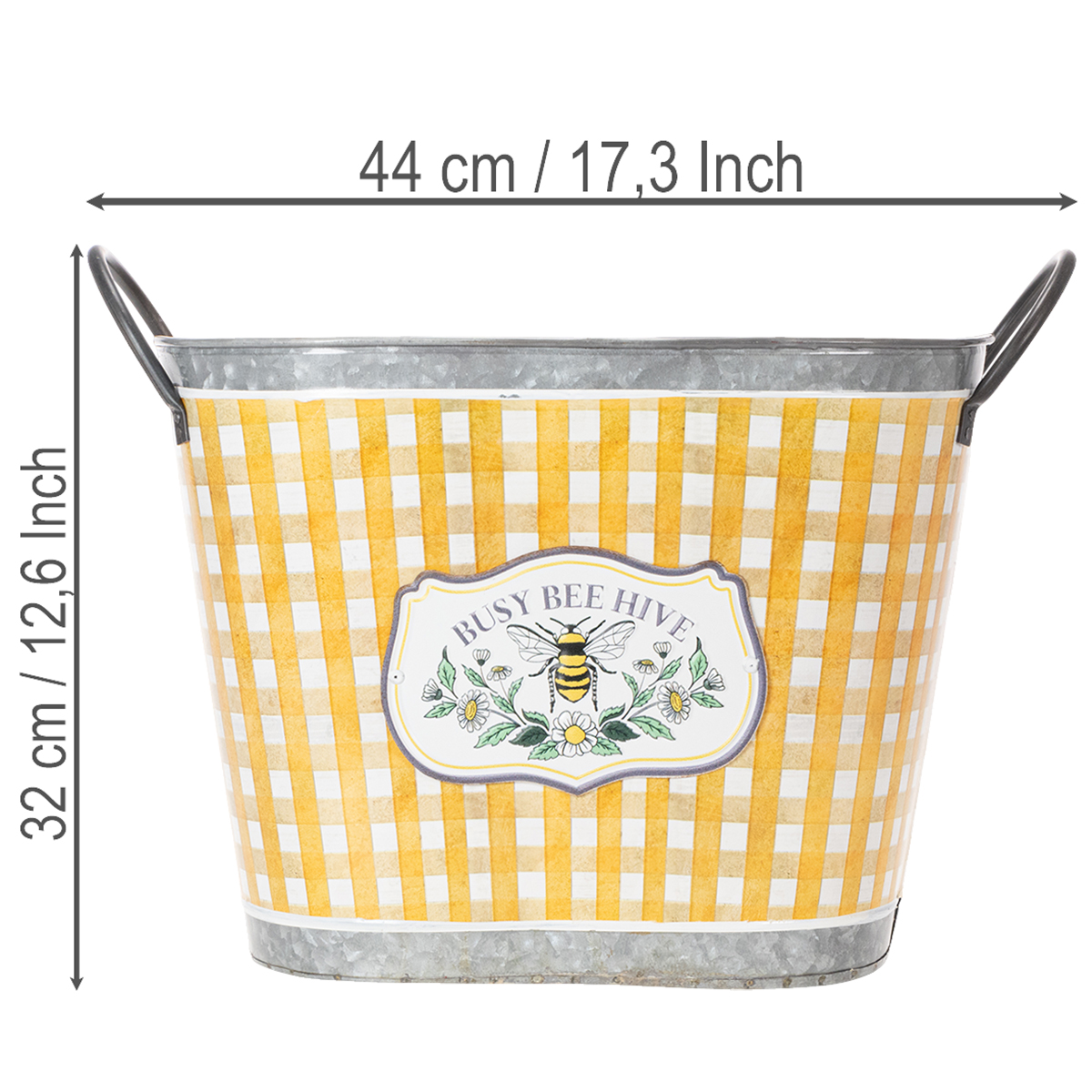 Doniczka owalna z motywem pszczoły, wzór w kratkę, letnia dekoracja, 38×24×29 cm