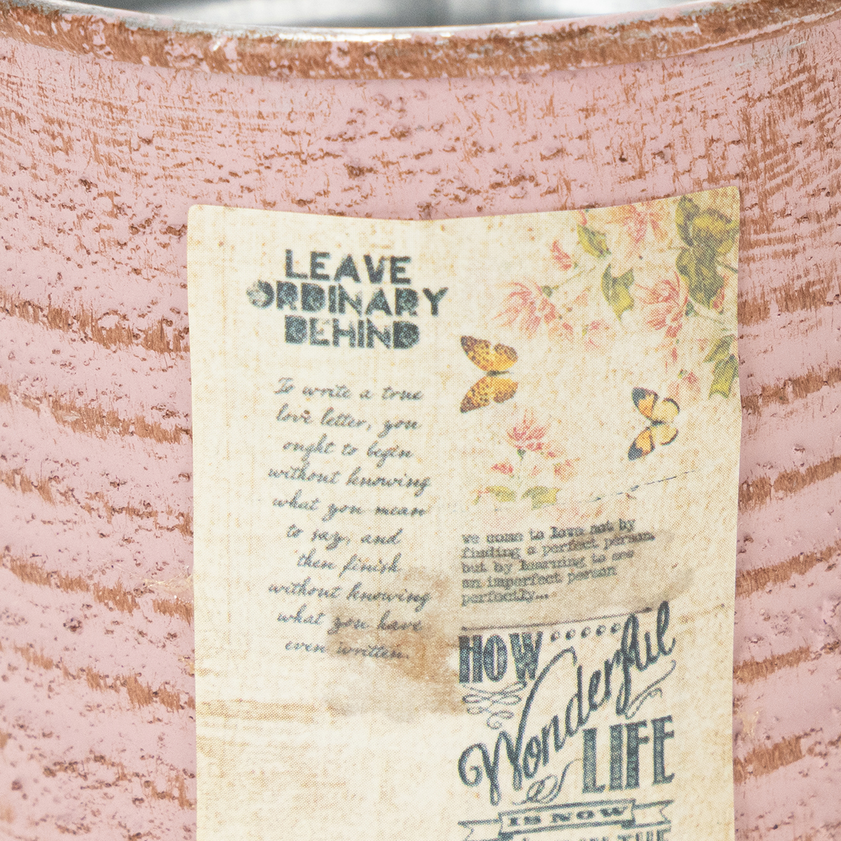 Jako oryginalna doniczka, to stare, różowe pudełko ozdobne w roślinnej dekoracji przekonuje nostalgicznymi detalami! Wnętrze donicy jest po prostu srebrne. Z zewnątrz natomiast emanuje urok vintage: delikatna różowa warstwa farby została starannie wyszczotkowana - tak na charakterystycznych żebrach puszki wydobywa się jasnobrązowa rdzawa barwa. Malowane plamy rdzy i naklejka ogrodowa w stylu vintage dopełniają przemyślanego shabby chic.