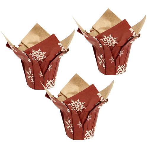 Doniczka papierowa w płatki śniegu czerwono-biała Ø6cm 12szt